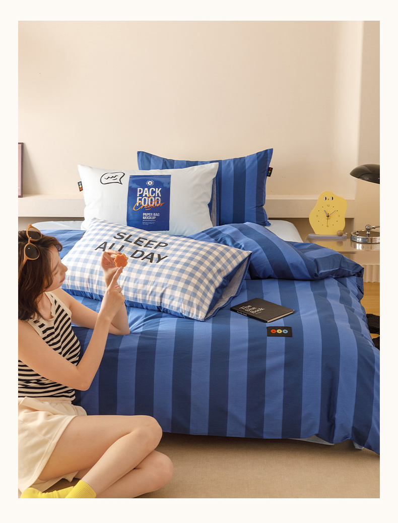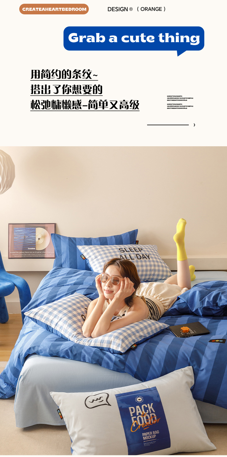 当前位置: 91家纺网 > 商品网购 > 床品套件 > 四件套 > 全棉普通四件套 > RYB红黄兰 2025新款ins慵懒风撞色系全棉四件套学生季宿舍床纯棉三件套 晚安生活(枕套)