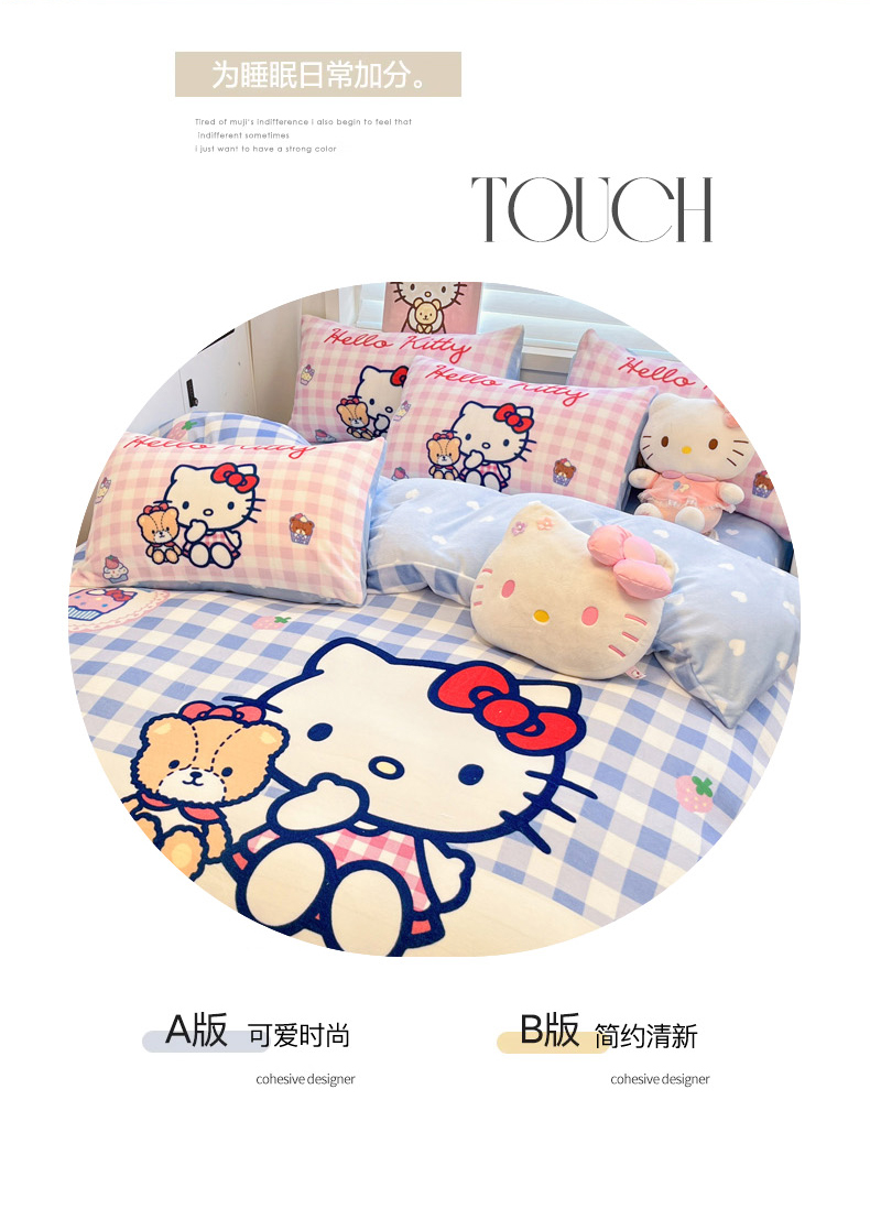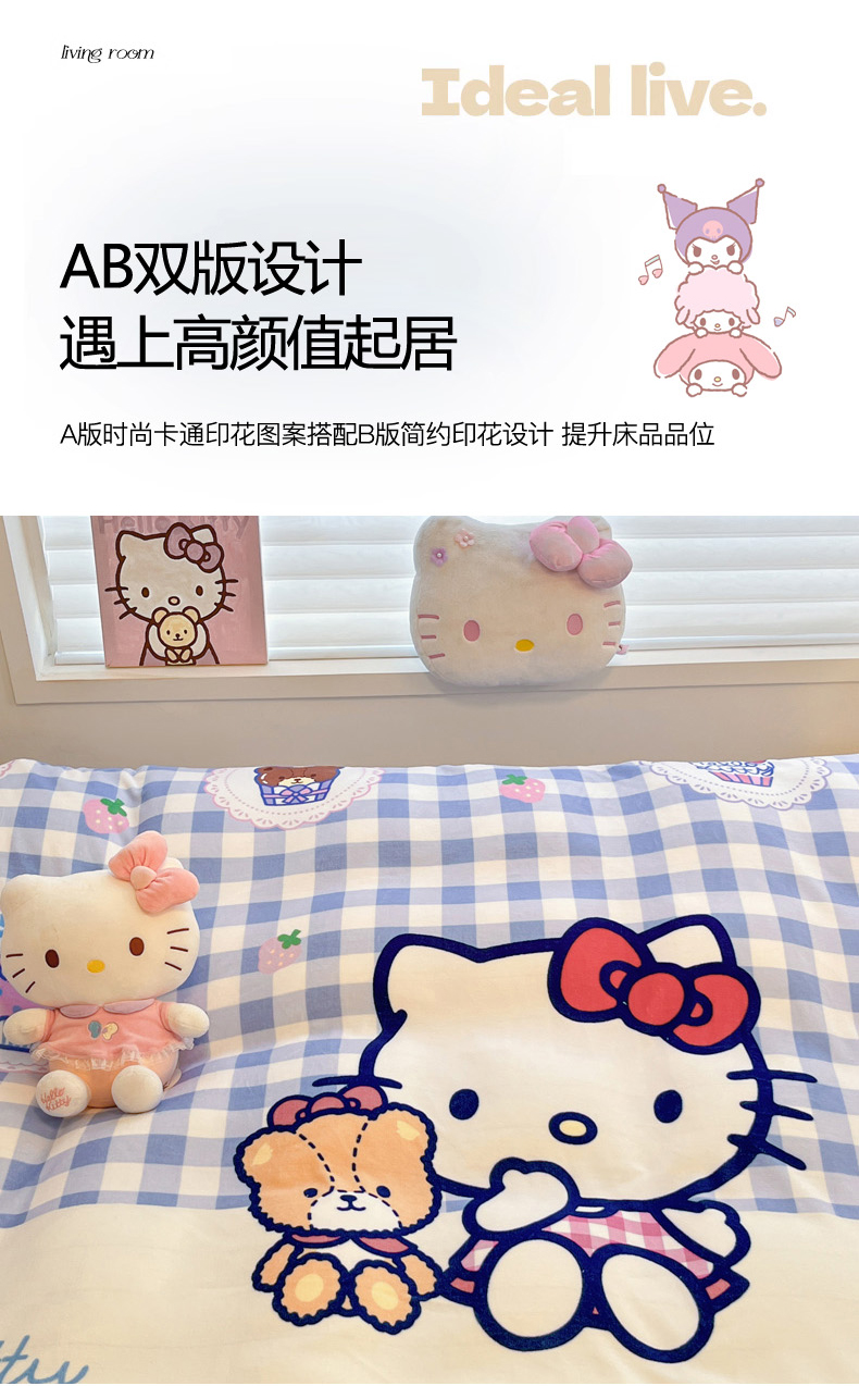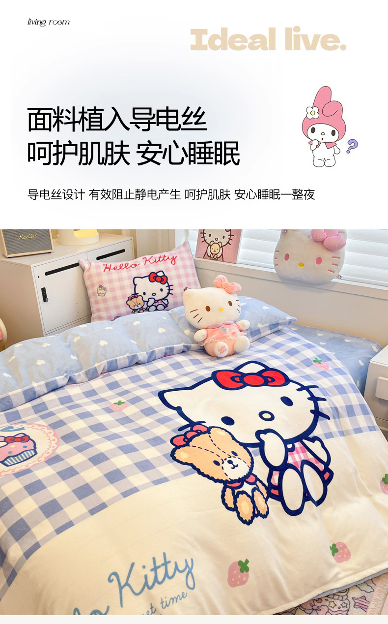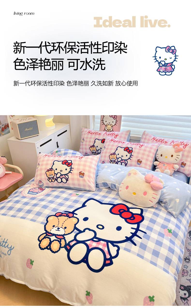 当前位置: 91家纺网 > 商品网购 > 床品套件 > 四件套 > 牛奶绒四件套 > 暮思家居 2025新款正版授权三丽鸥大阪数码印花高克重加厚保暖牛奶绒四件套 绒大阪-格子KT