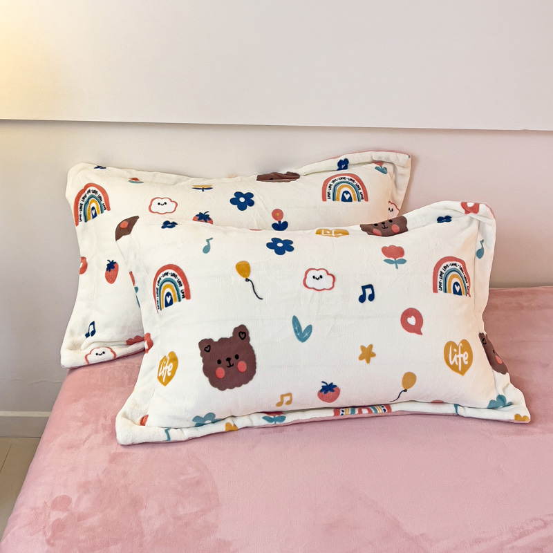 商品名称:富馨莱 2025新款牛奶绒印花枕套240克面料 绒摩卡色