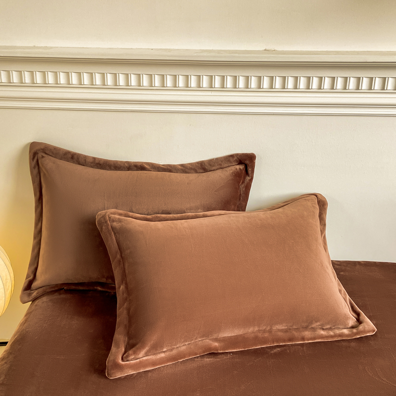 富馨莱 2025新款牛奶绒印花枕套240克面料 绒摩卡色