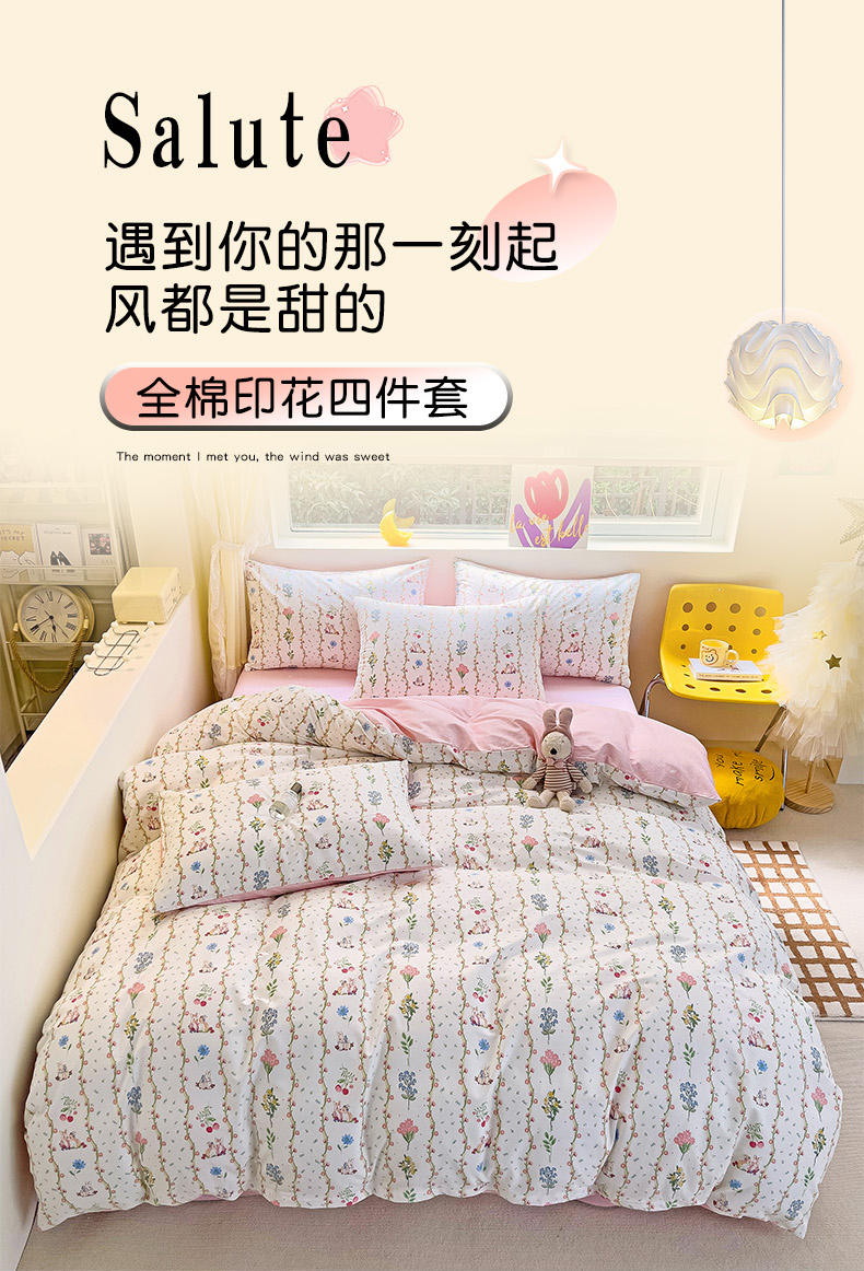 朵希曼 2026新款全棉印花小清新系列四件套 枝间梦