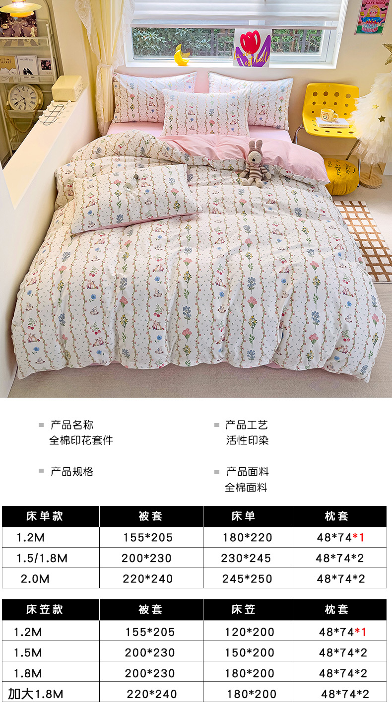 商品名称:朵希曼 2026新款全棉印花小清新系列四件套 枝间梦