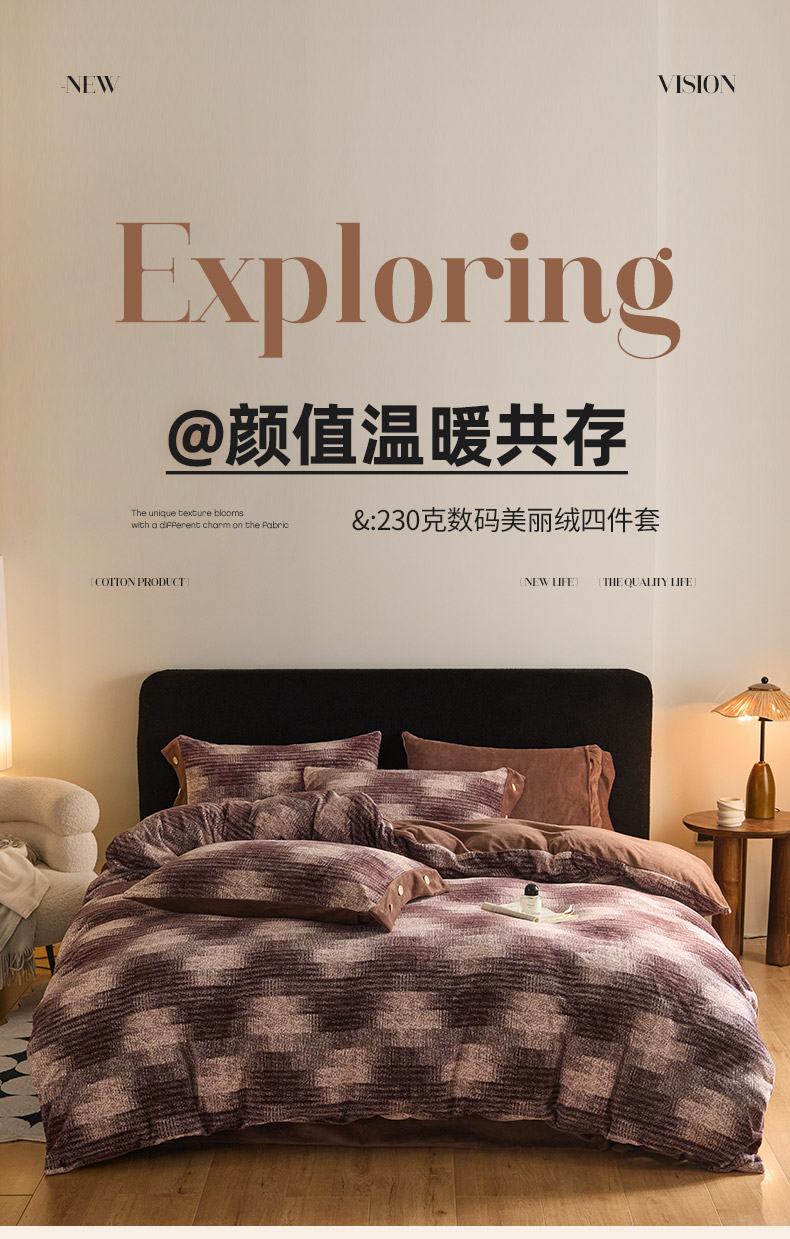 (总)吾秀家居 绒城 230克美拉德数码绒四件套 牛奶绒四件套 - 暖秋系列,花韵,暗香,冬日恋歌-咖,冬日恋歌-棕,冬日森林,花意浓,境玉森林,罗曼庄园,拿铁玫瑰,深紫罗兰,丝绒玫瑰,幽香花语