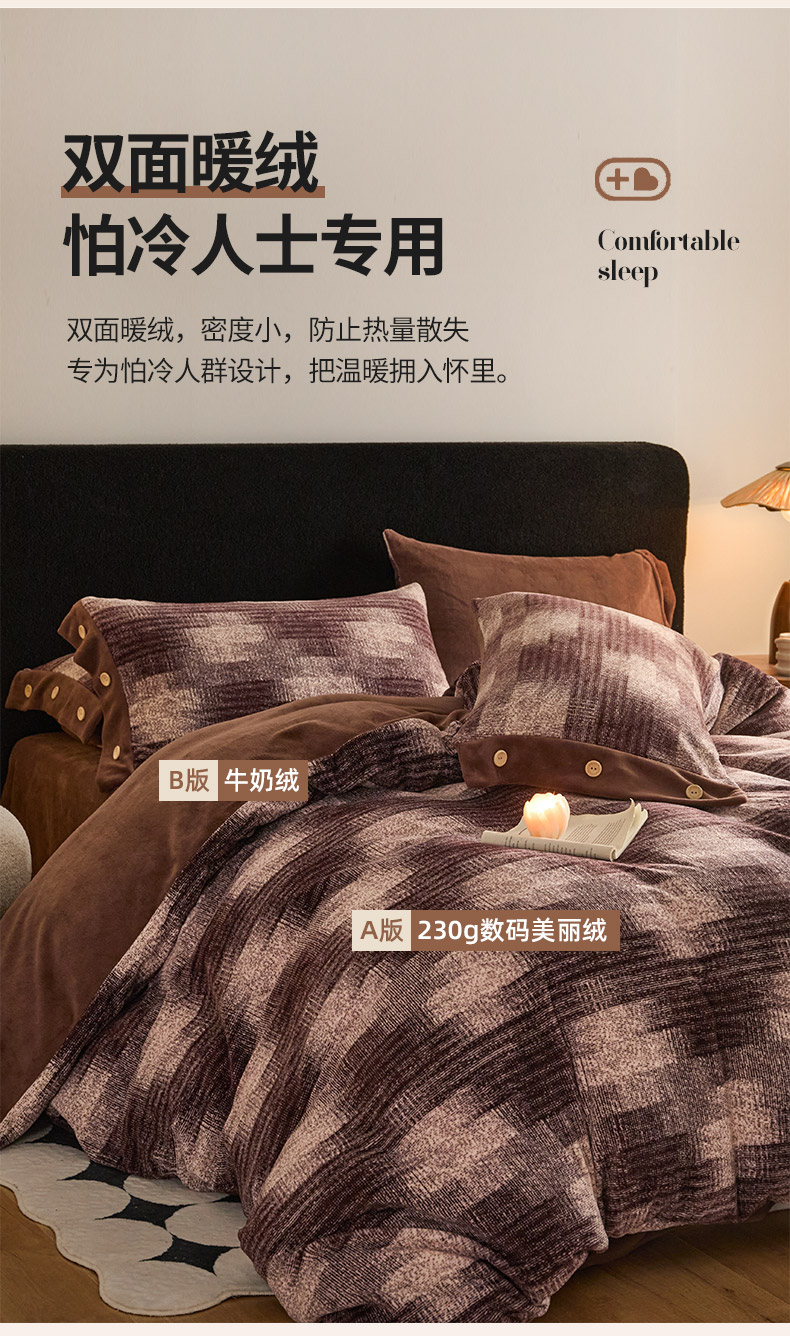吾秀家居 绒城 2025 纽扣工艺款230克美丽绒四件套 牛奶绒四件套-美丽系列 格调可可