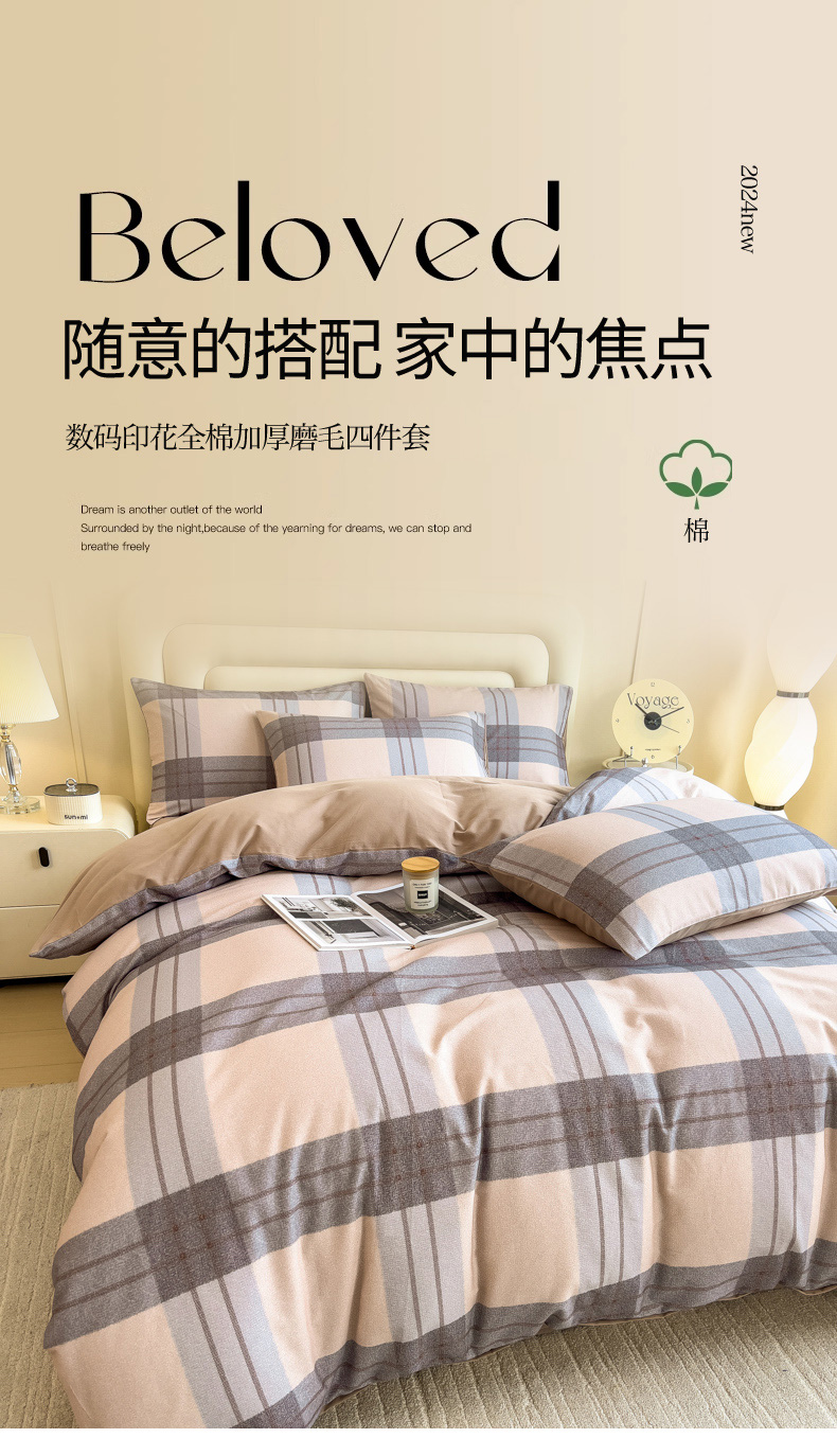 当前位置: 91家纺网 > 商品网购 > 床品套件 > 四件套 > 全棉普通四件套 > 印季家纺 2025新款数码印花全棉纯棉加厚磨毛四件套 柚甜