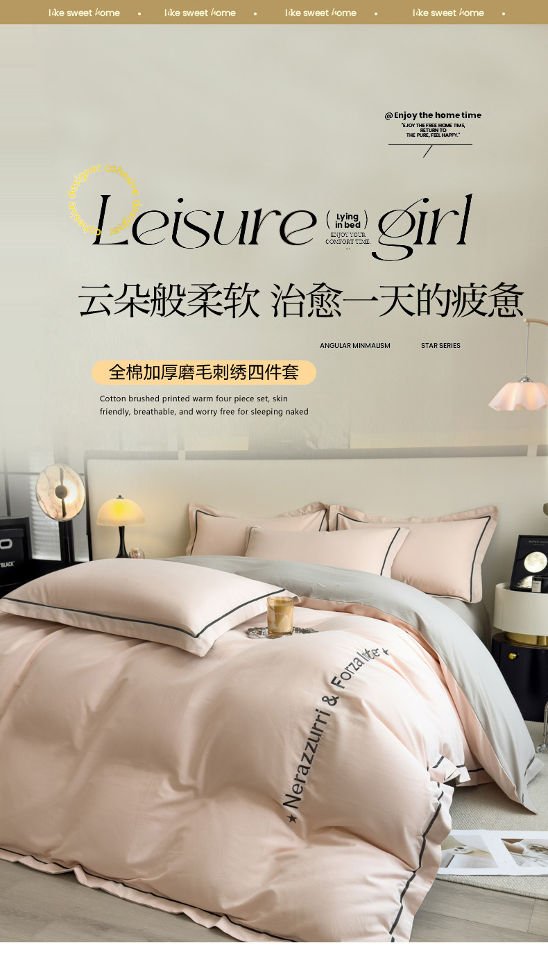 当前位置: 91家纺网 > 商品网购 > 床品套件 > 四件套 > 全棉普通四件套 > 印季家纺 2025新款绣花一字绣全棉纯棉加厚磨毛四件套 梦幻粉-星空银