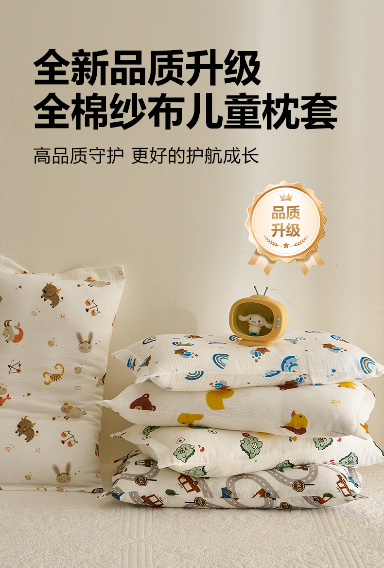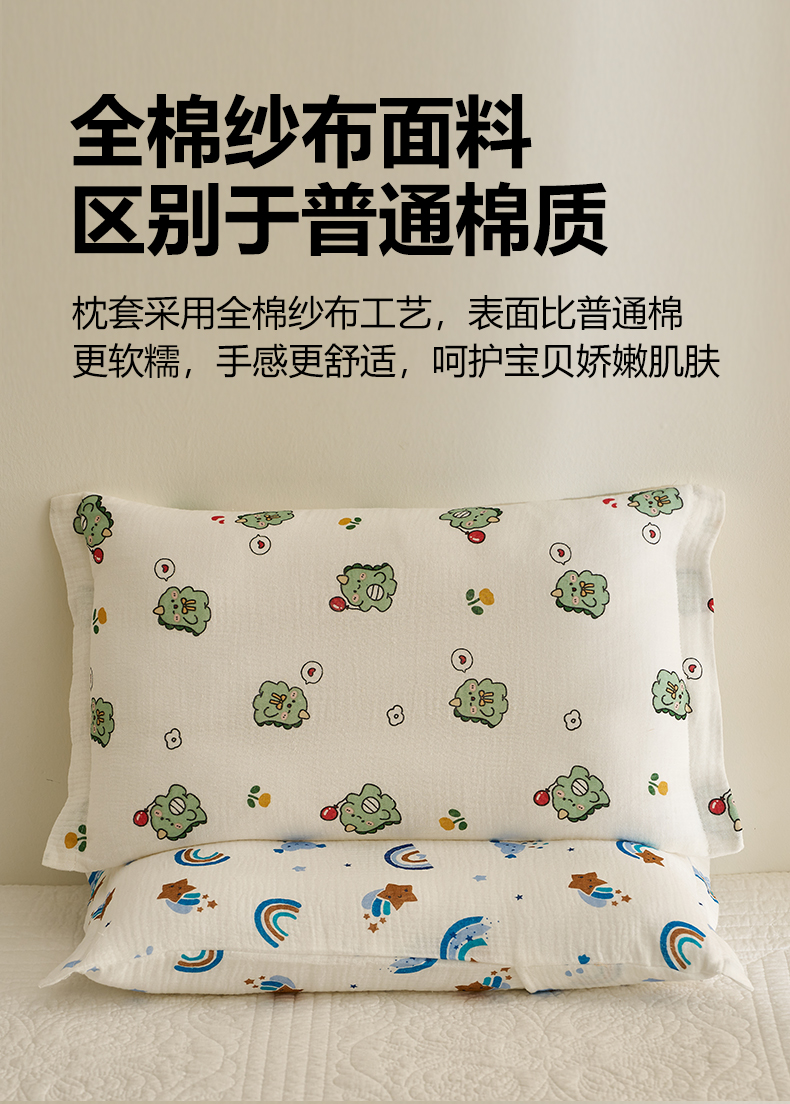 商品名称:乐可 2025新款全棉纯棉纱布儿童枕套单枕套 TB2小熊黄鸭