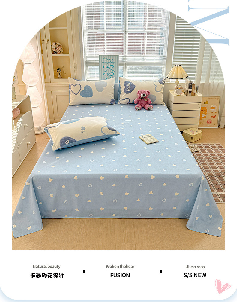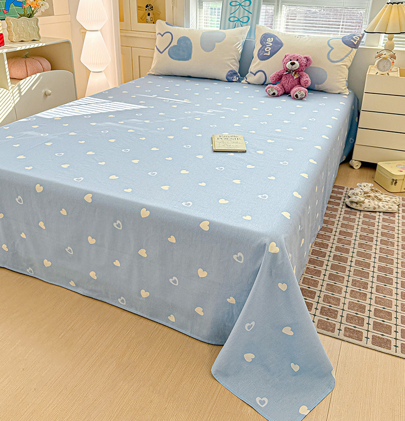 名品家纺 2026新款100%纯棉床单系列 蓝色爱心