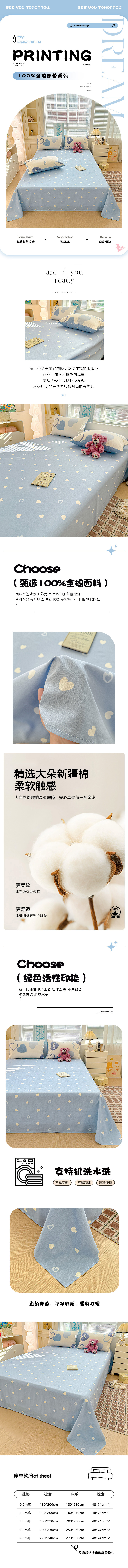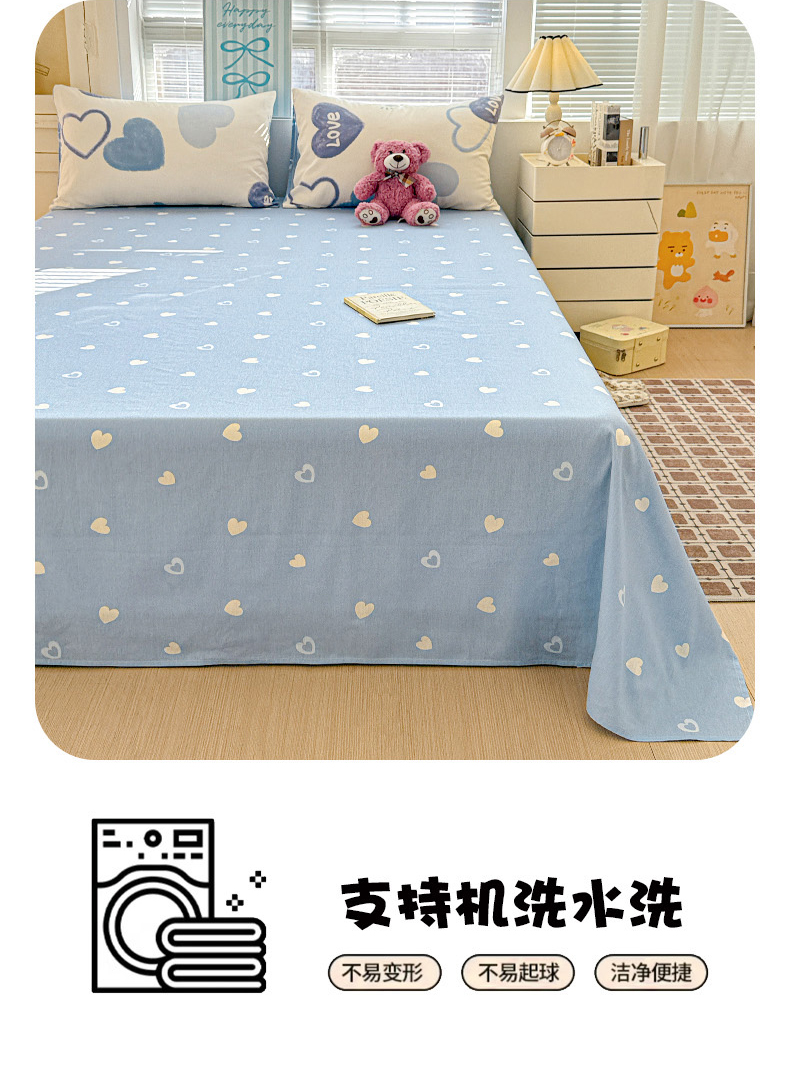 商品名称:名品家纺 2026新款100%纯棉床单系列 蓝色爱心