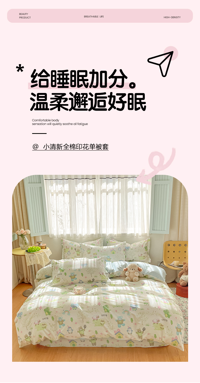 (总)花梦欣 2026新款全棉印花系列简约卡通款单被套
