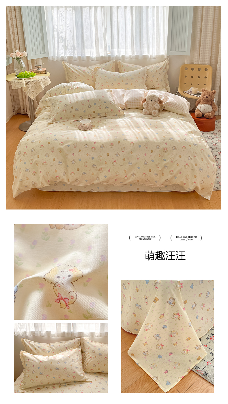 当前位置: 91家纺网 > 商品网购 > 床品套件 > 四件套 > 全棉普通四件套 > 花梦欣 2026新款全棉印花系列简约卡通款四件套 芋泥小狗