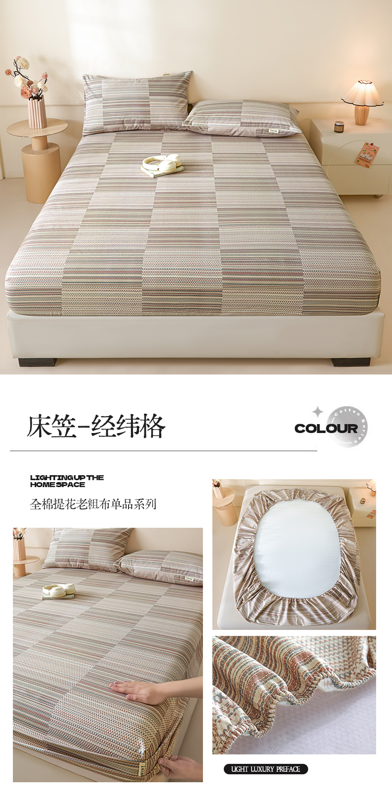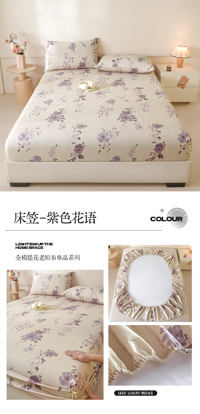 涵宸家纺 2026新款全棉提花老粗布-单床笠 床笠-彩花语