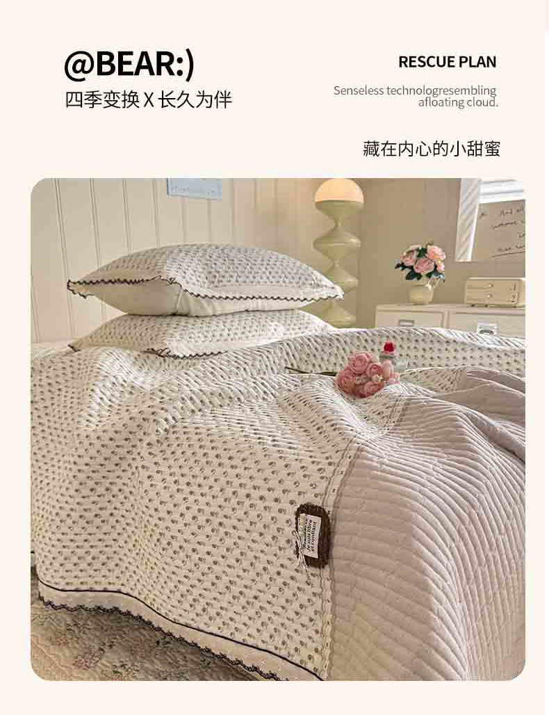 (总)贝凯瑞 2026新款水洗皱皱纱双层纱云朵棉三层夹棉绗绣刺绣小花边单件三件床盖,粉黛甜心,海盐气泡,奶咖碎梦,软萌小狗,芋泥奶冻,组合图仅供展示-不可下单