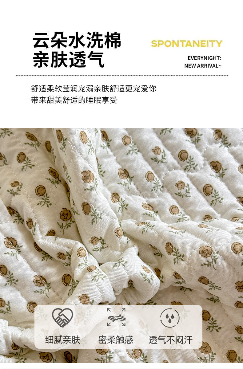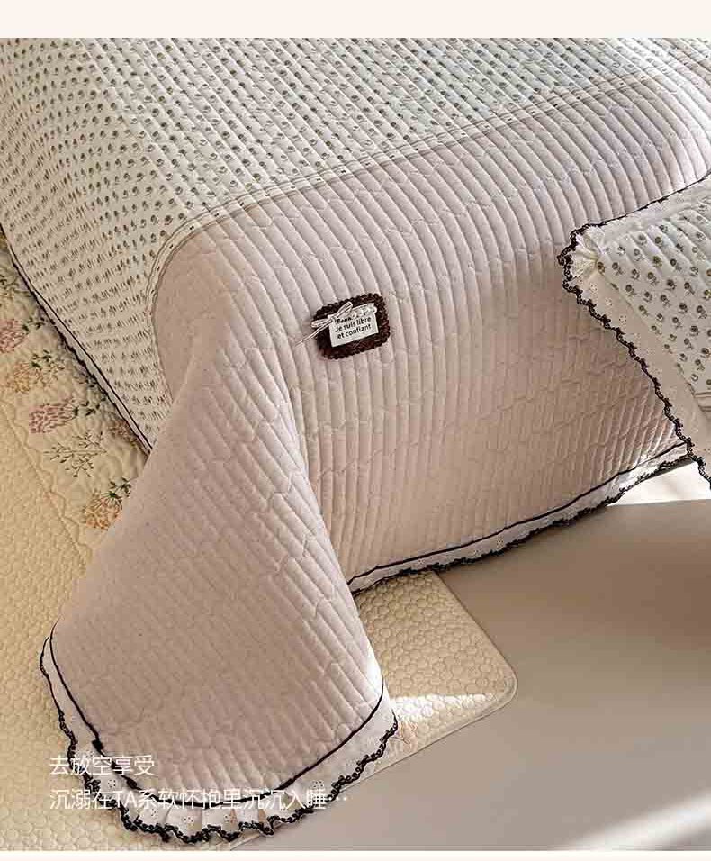 当前位置: 91家纺网 > 商品网购 > 床上用品 > 床盖 > 贝凯瑞 2026新款水洗皱皱纱双层纱云朵棉三层夹棉绗绣刺绣小花边单件三件床盖 奶咖碎梦
