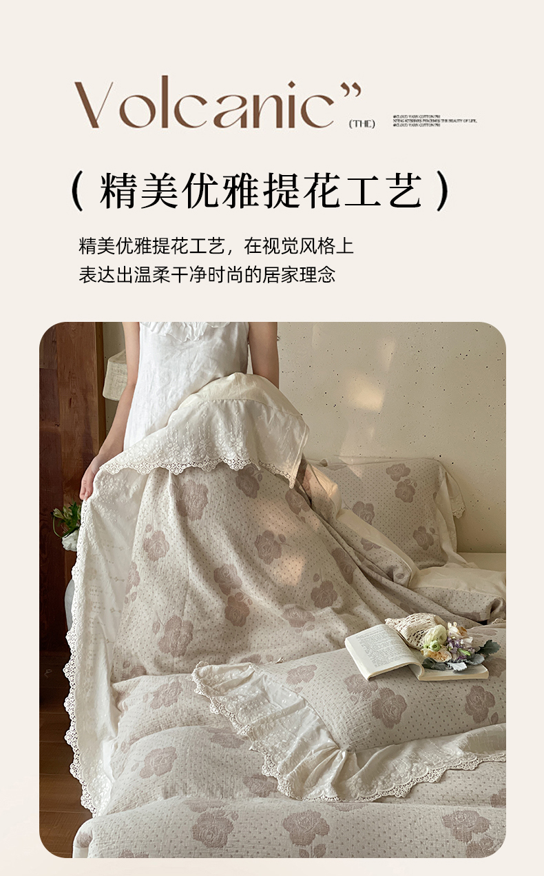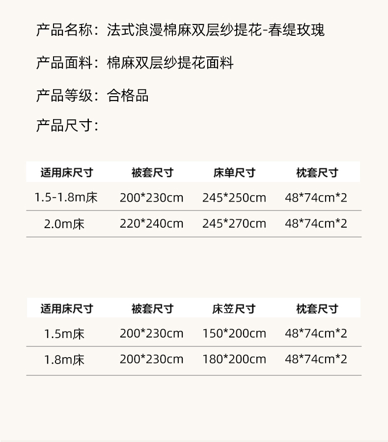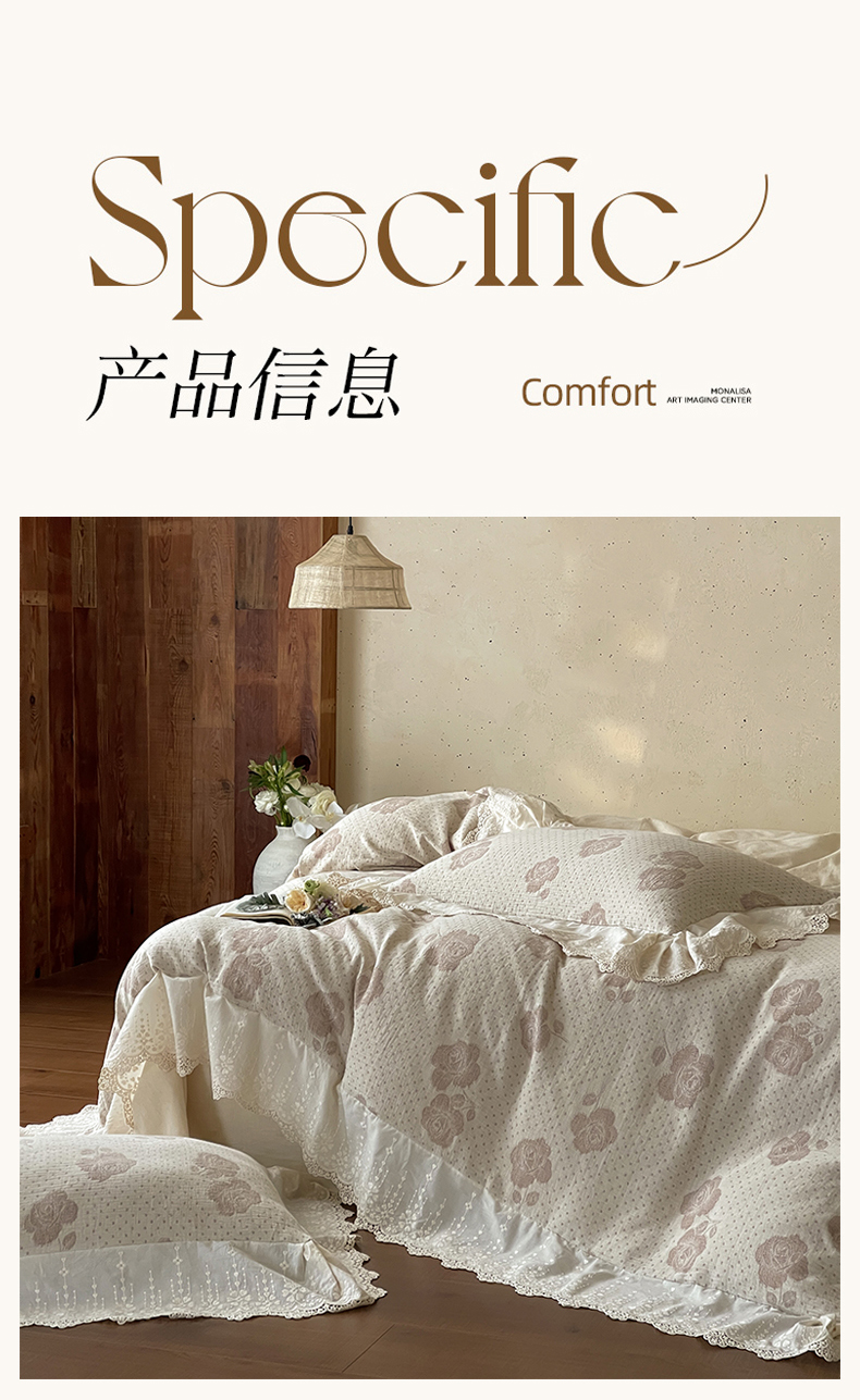 商品名称:(总)玛奇朵 2026新款法式浪漫棉麻双层纱提花四件套-春缇玫瑰