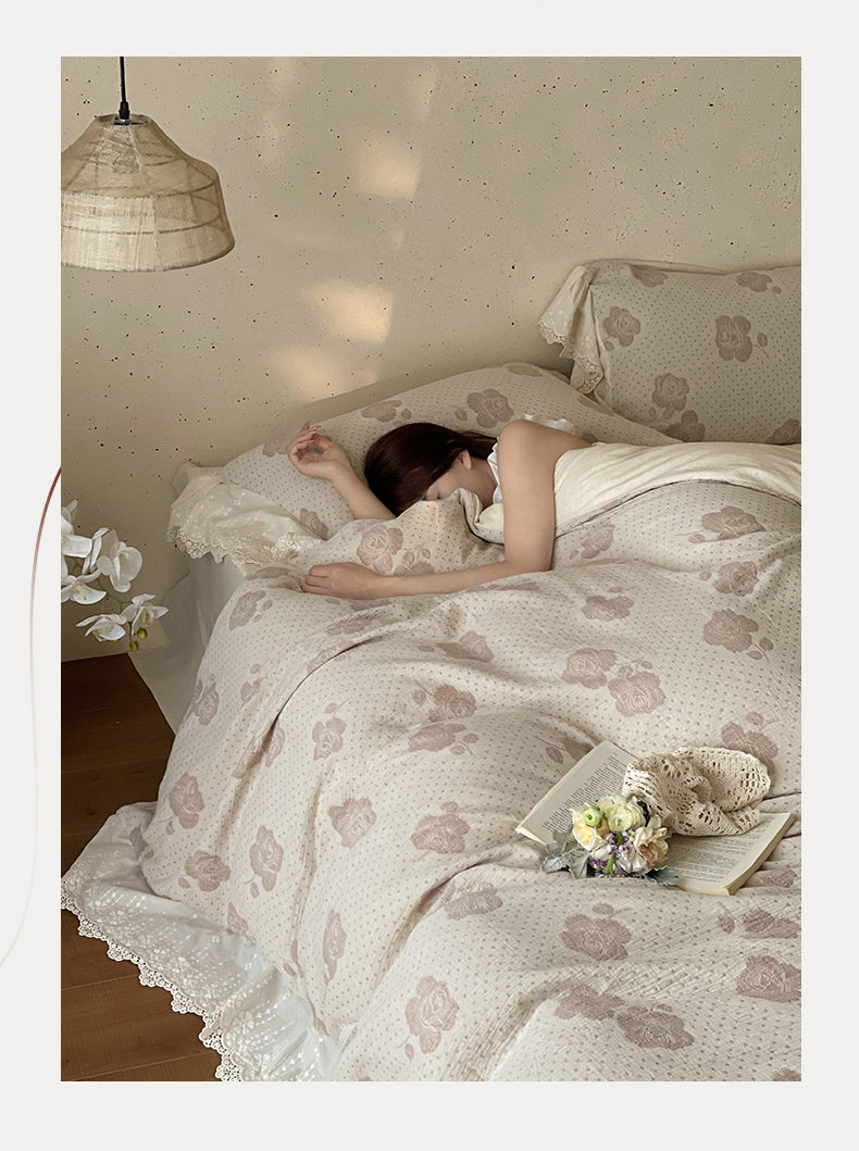 (总)玛奇朵 2026新款法式浪漫棉麻双层纱提花四件套-春缇玫瑰