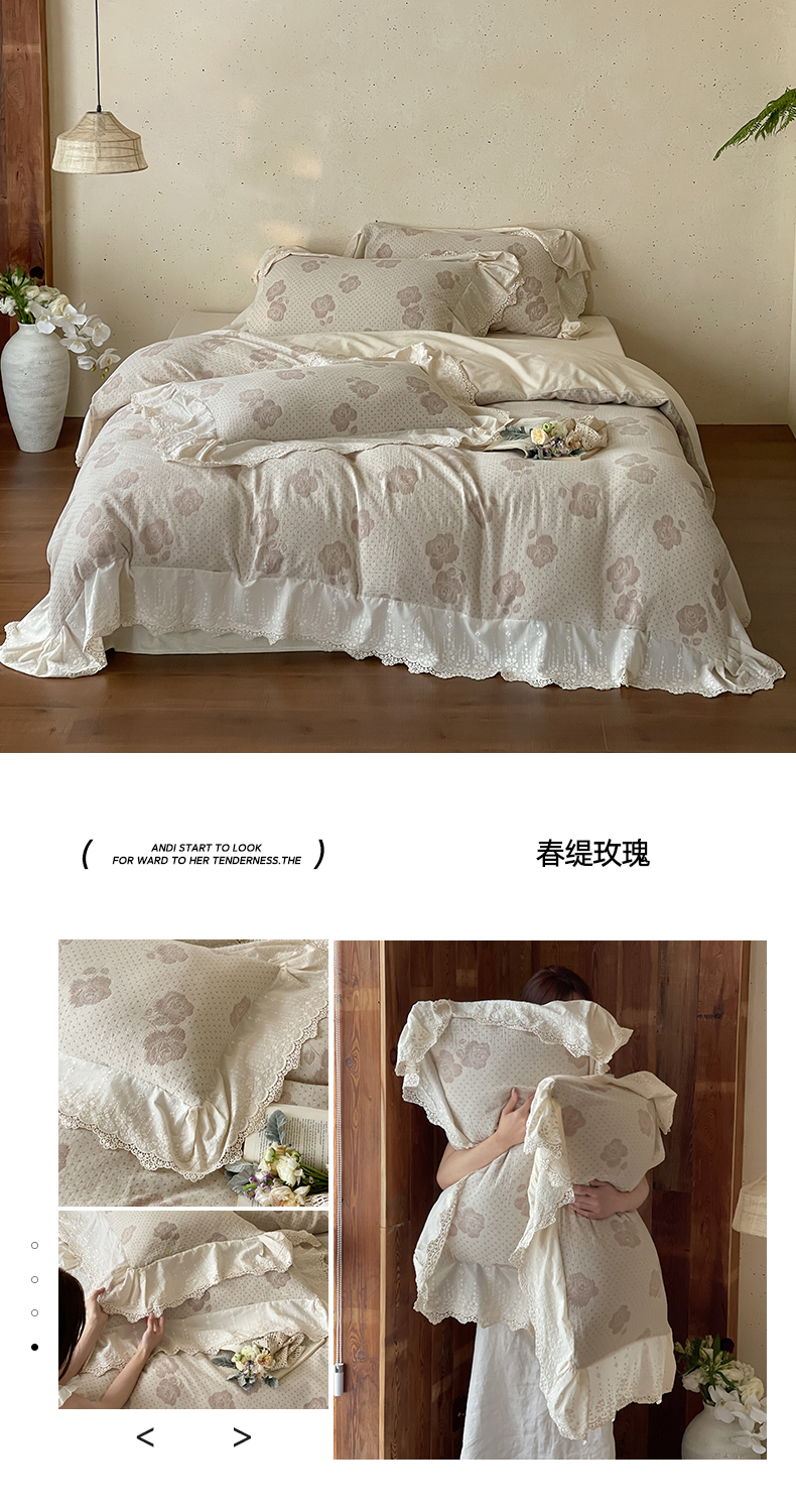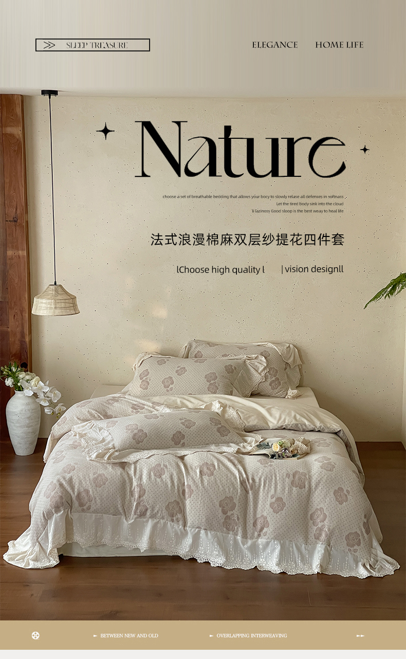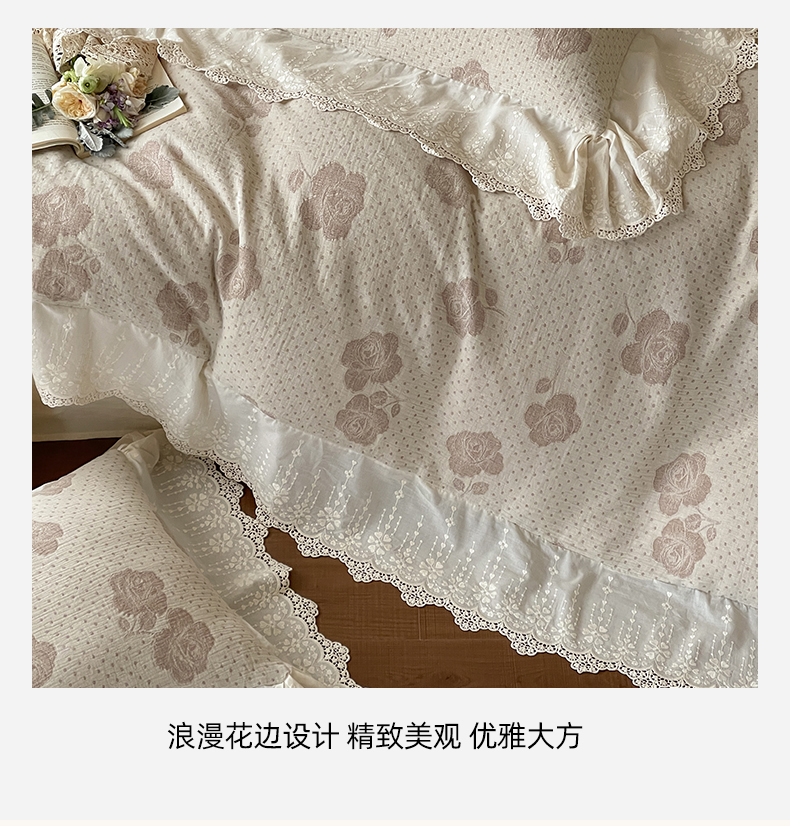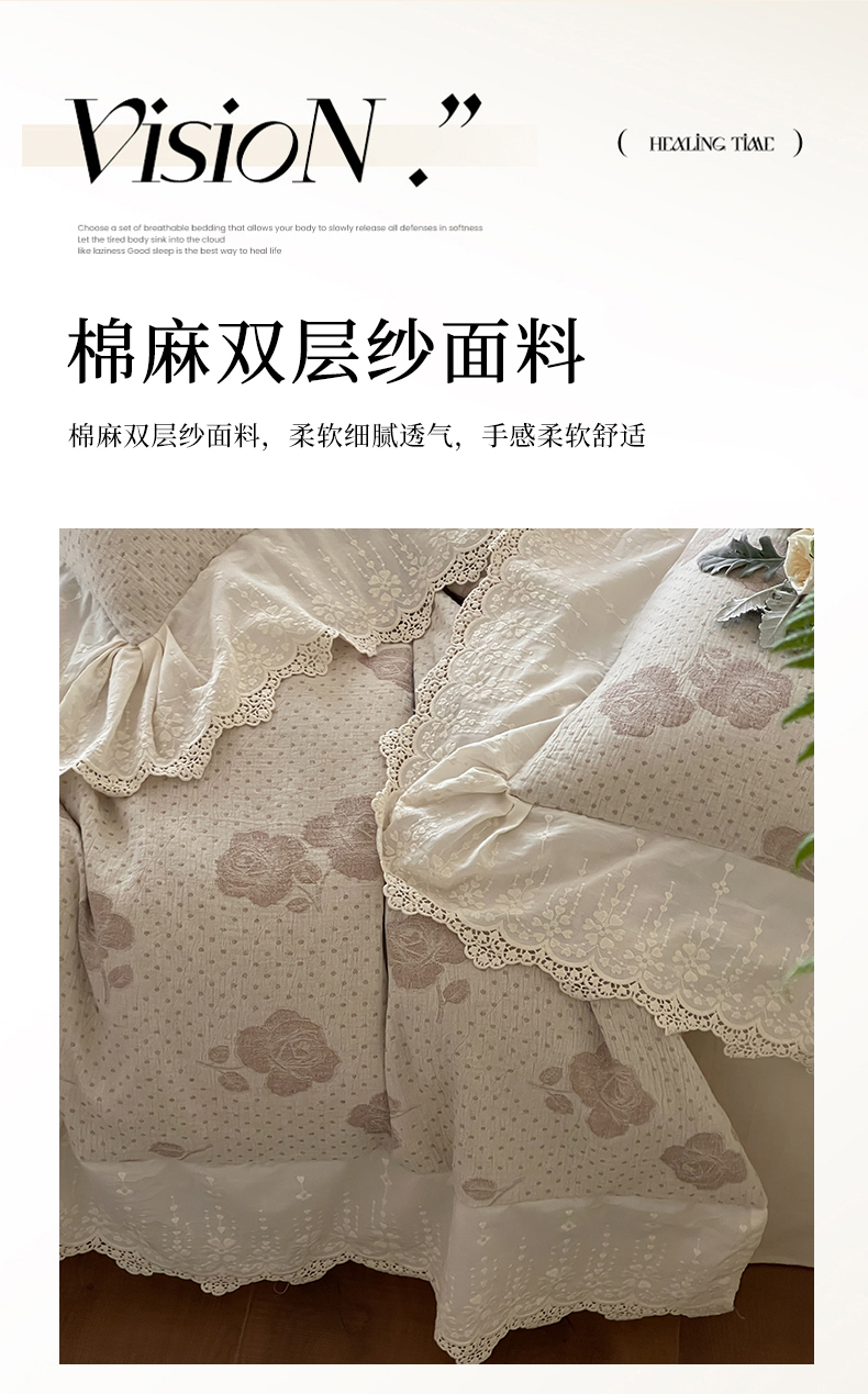 (总)玛奇朵 2026新款棉麻佗寂之美法式花边四件套-禾沐春风,禾沐春风