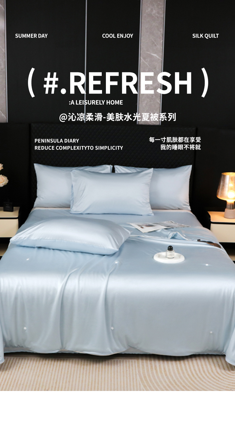 商品名称:爱彼家纺 2026新款高端流锻水光夏被冰肌锦氨A类夏被夏凉被空调被(超亲肤) 奢雅浅蓝