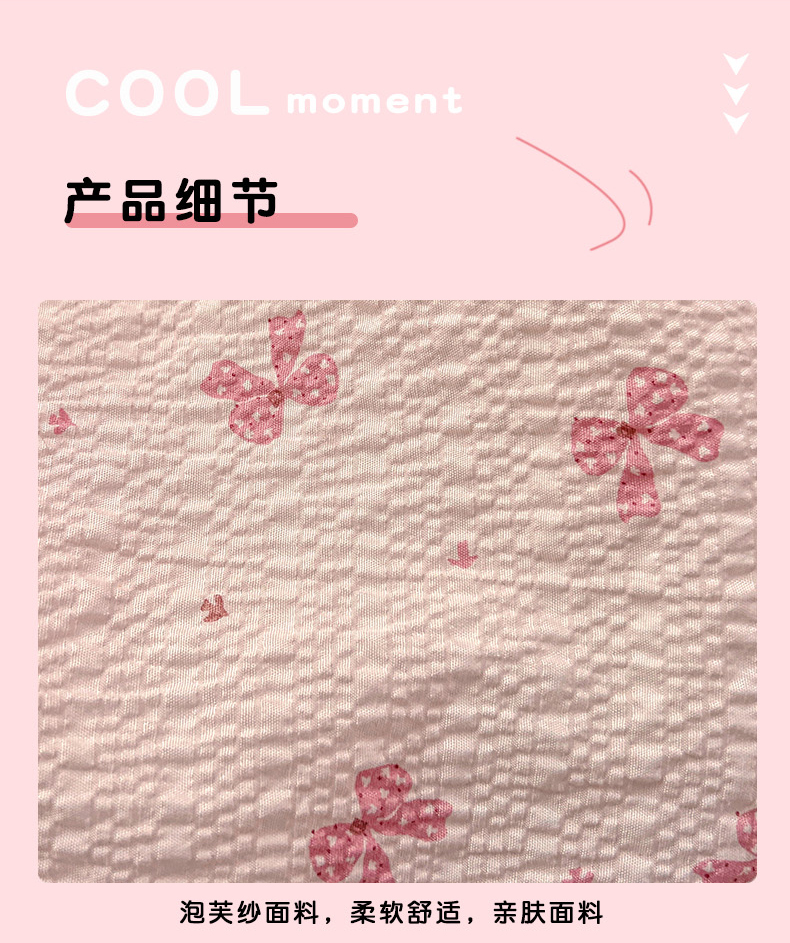 商品名称:金梦拉家纺 2026新款泡芙纱全棉小黑花边夏被四件套 可爱蝴蝶结