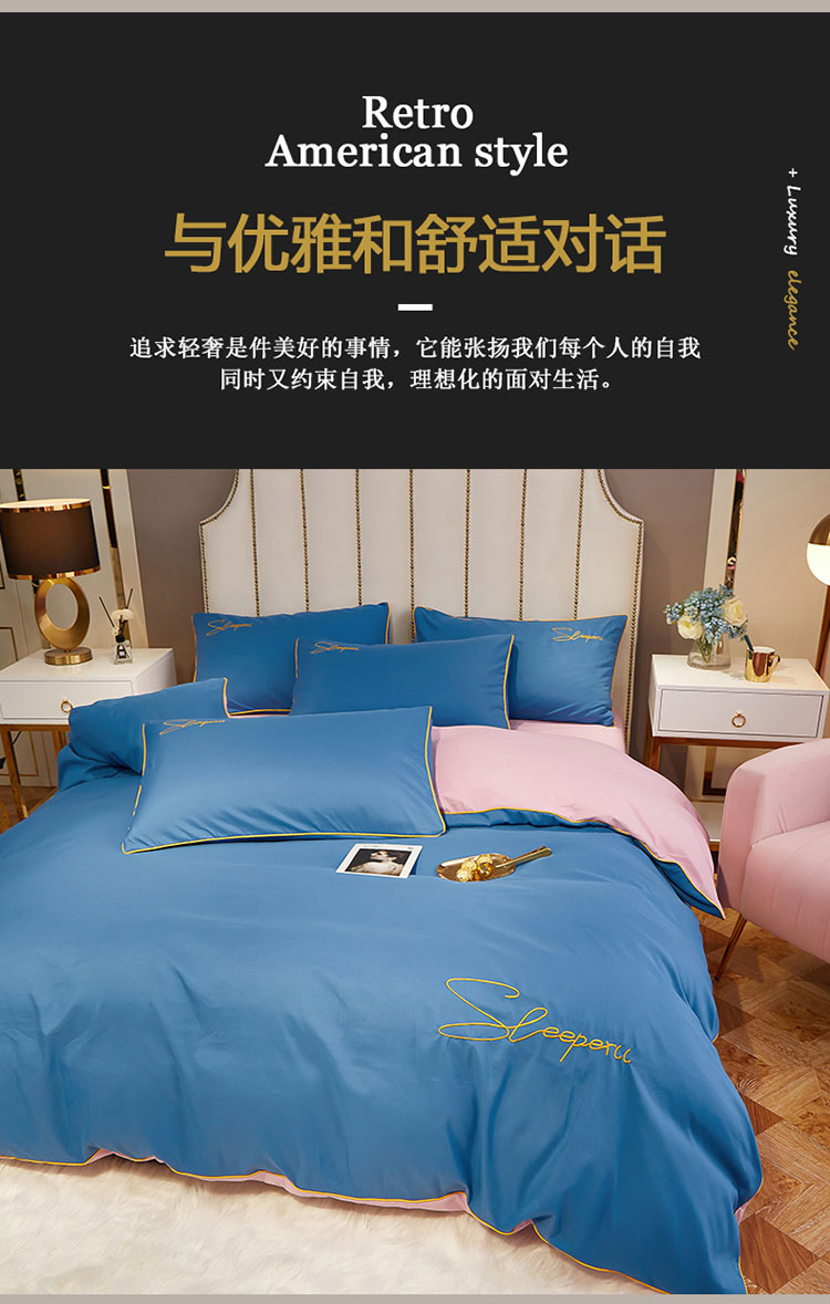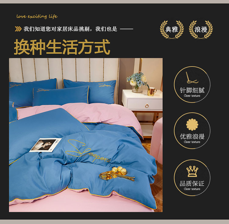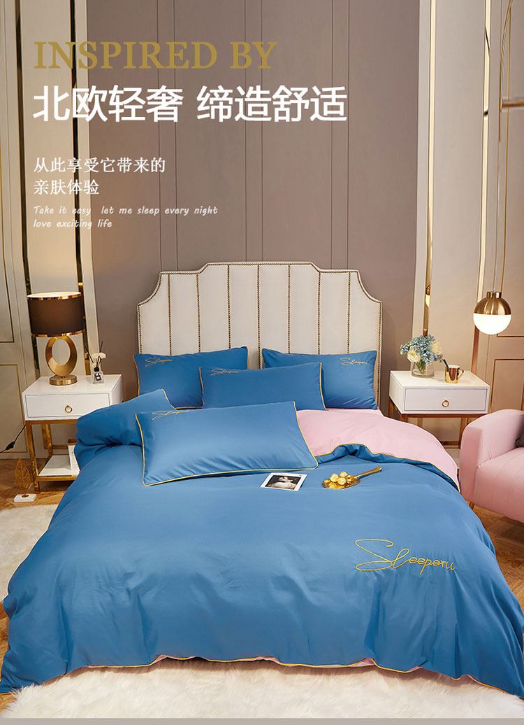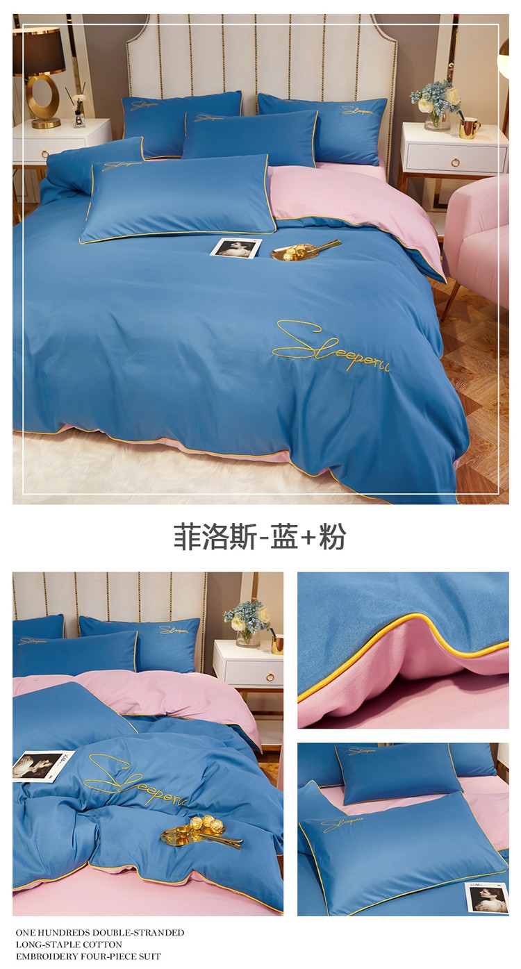 当前位置: 91家纺网 > 商品网购 > 床品套件 > 四件套 > 全棉普通四件套 > 曼谷 新款轻奢刺绣四件套菲洛斯系列 菲洛斯-蓝+粉