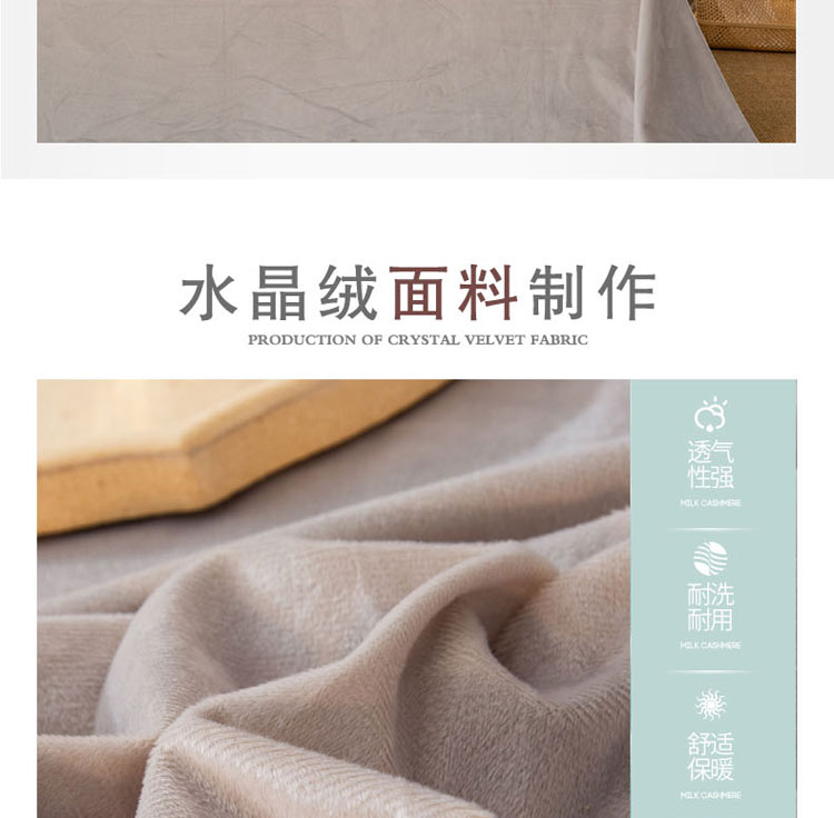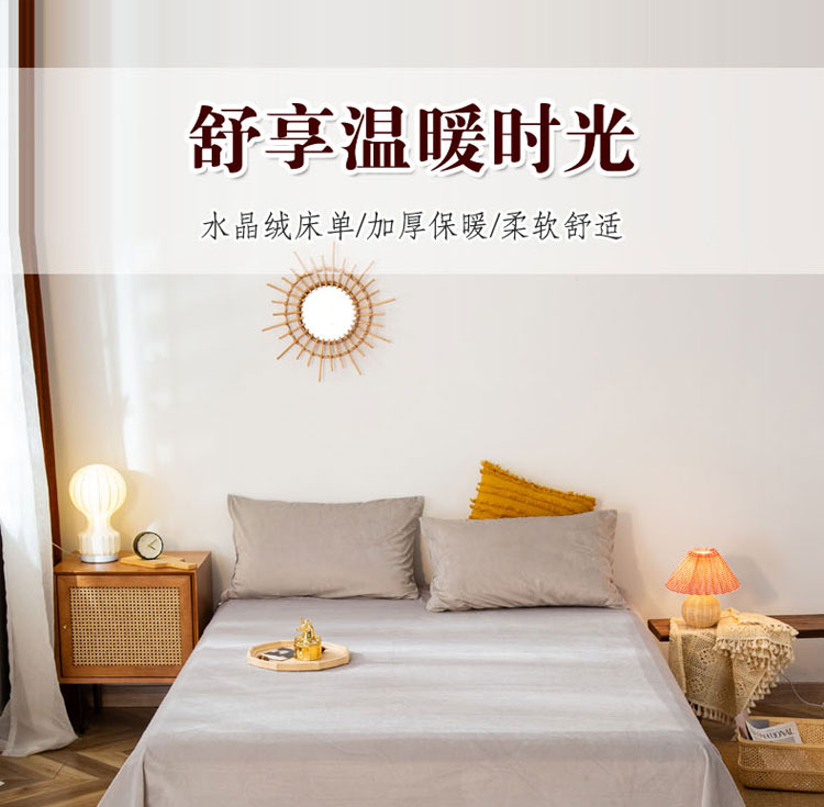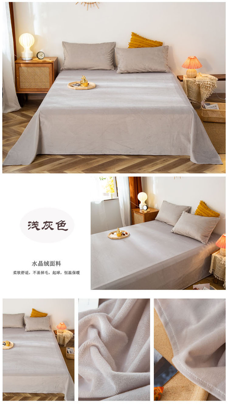 • 91家纺网 家纺一手货源 找家纺 梦家居 2020秋冬单品水晶绒床单 浅灰色