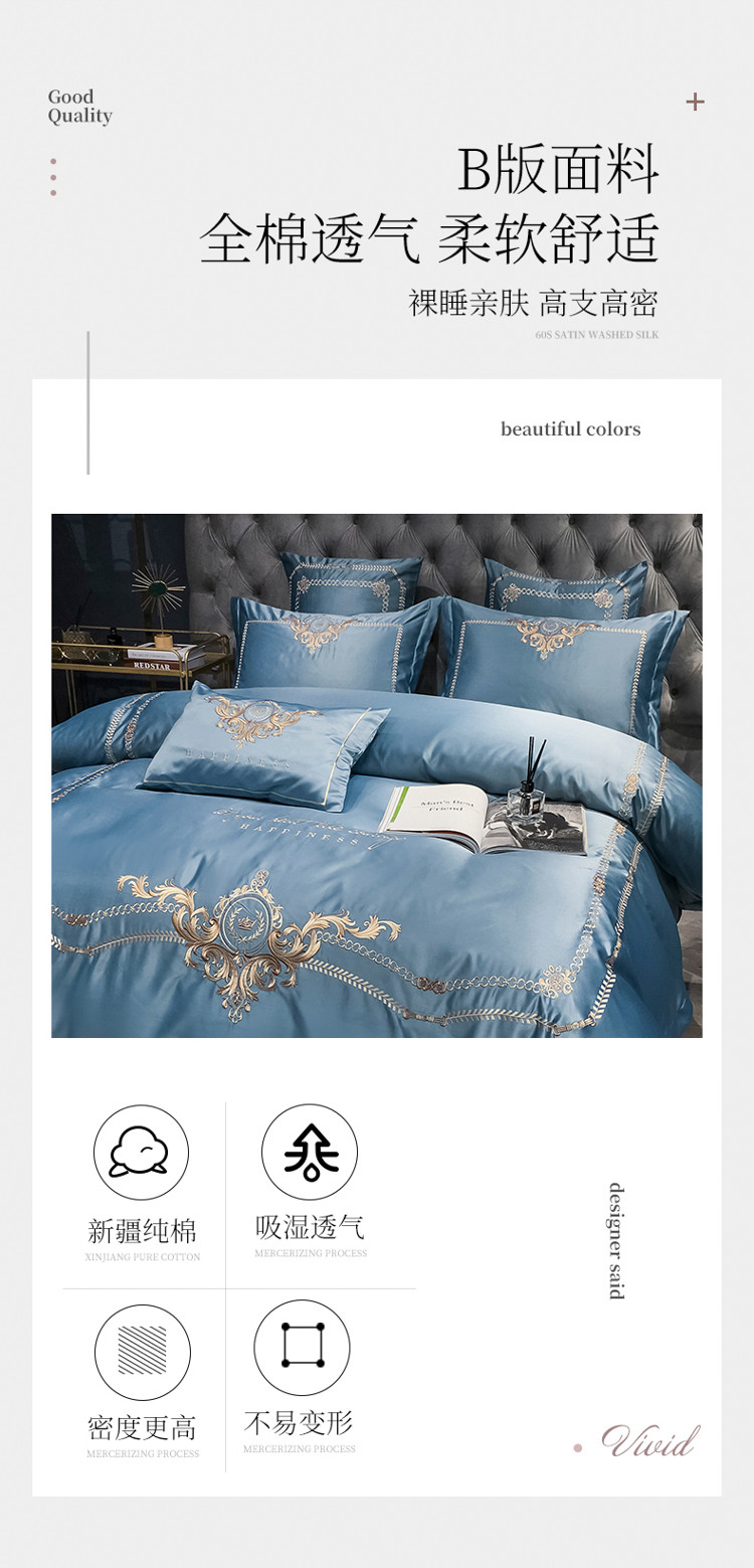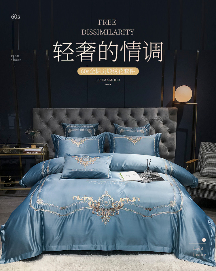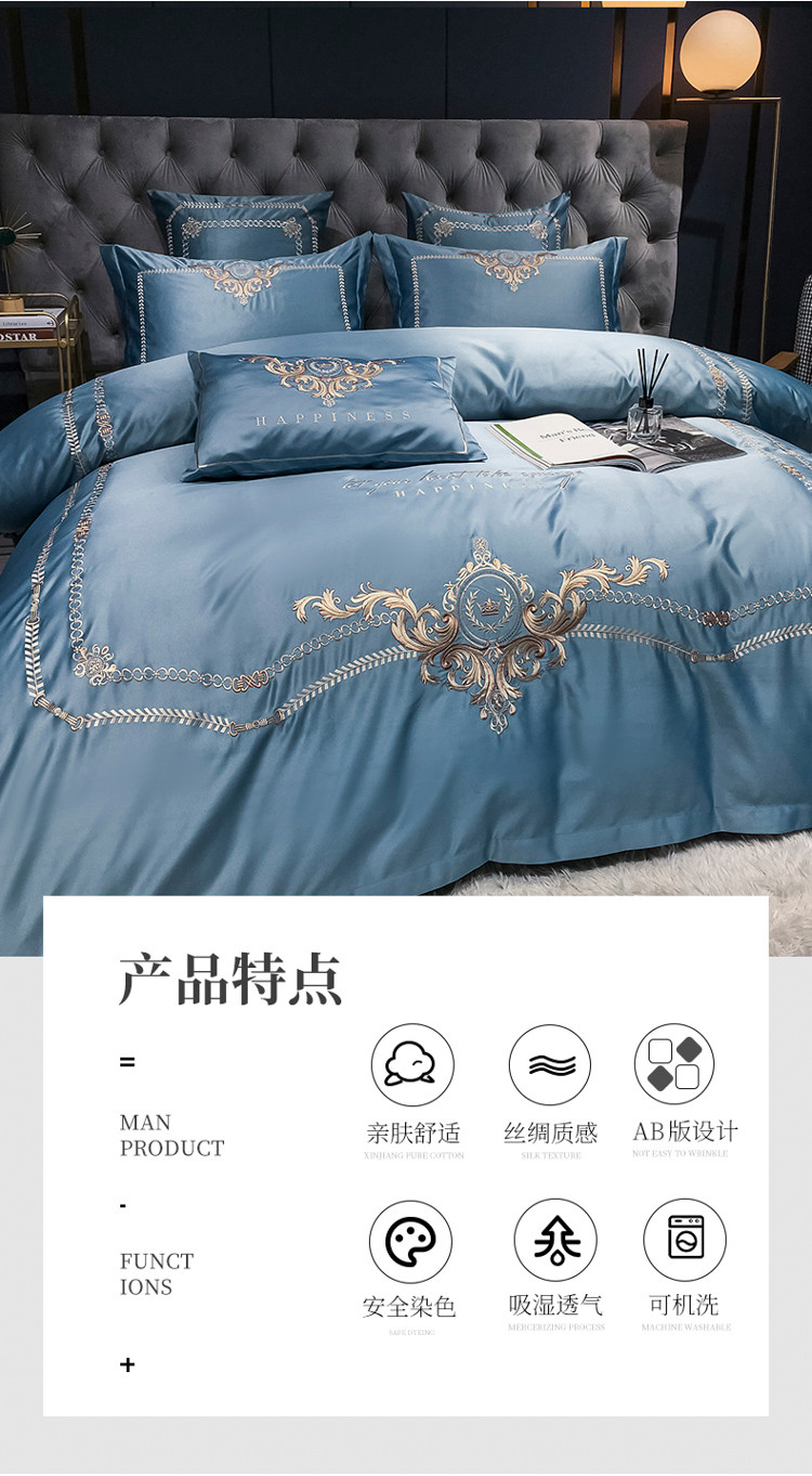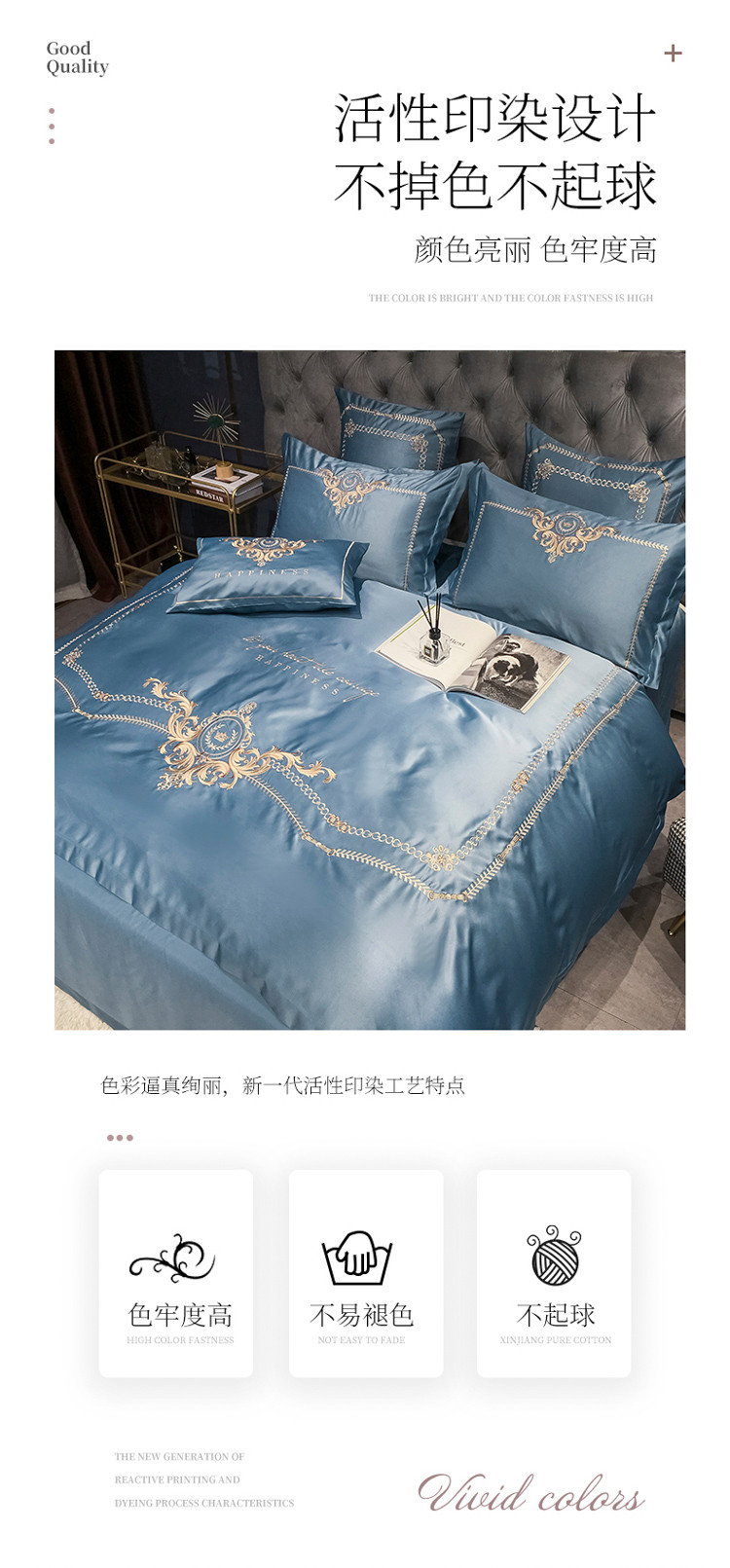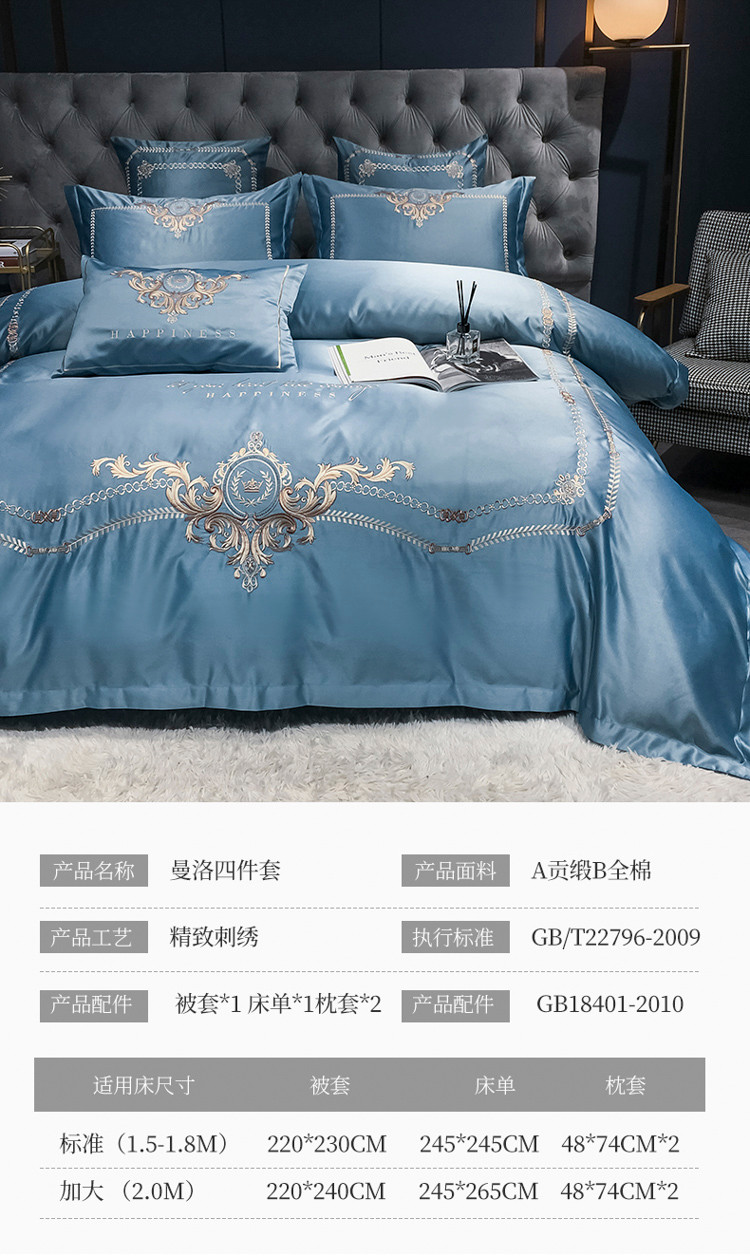 商品名称:安妮 2021新款全棉贡缎四件套曼洛系列 宾利蓝