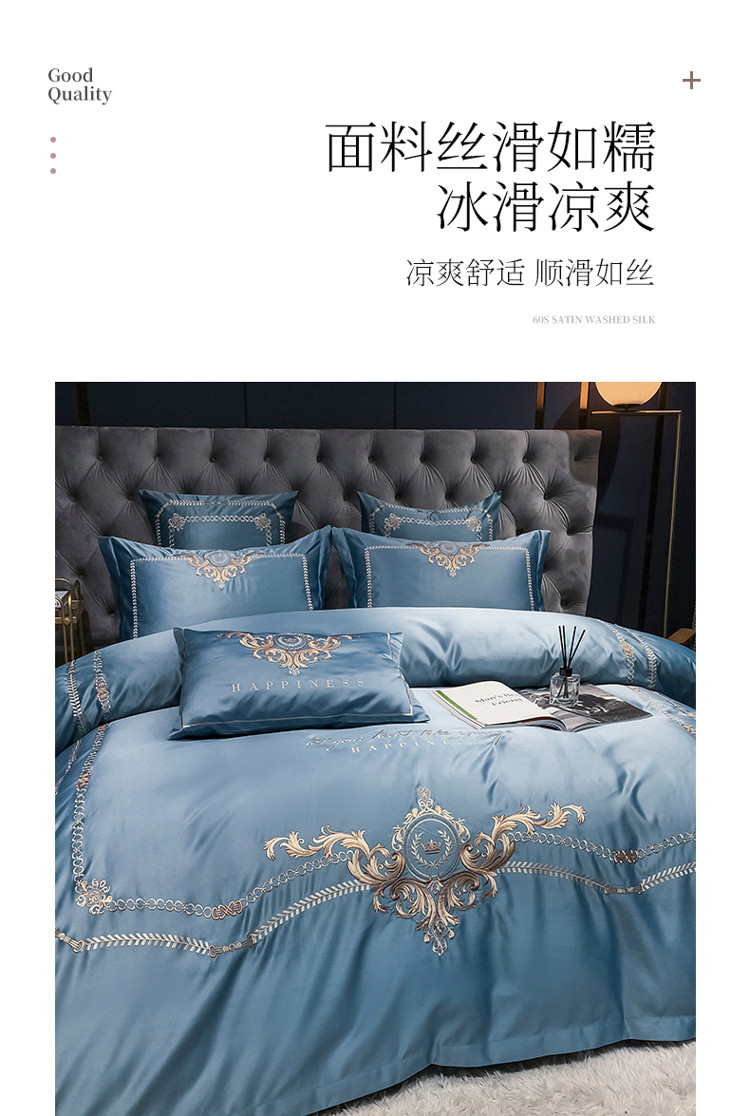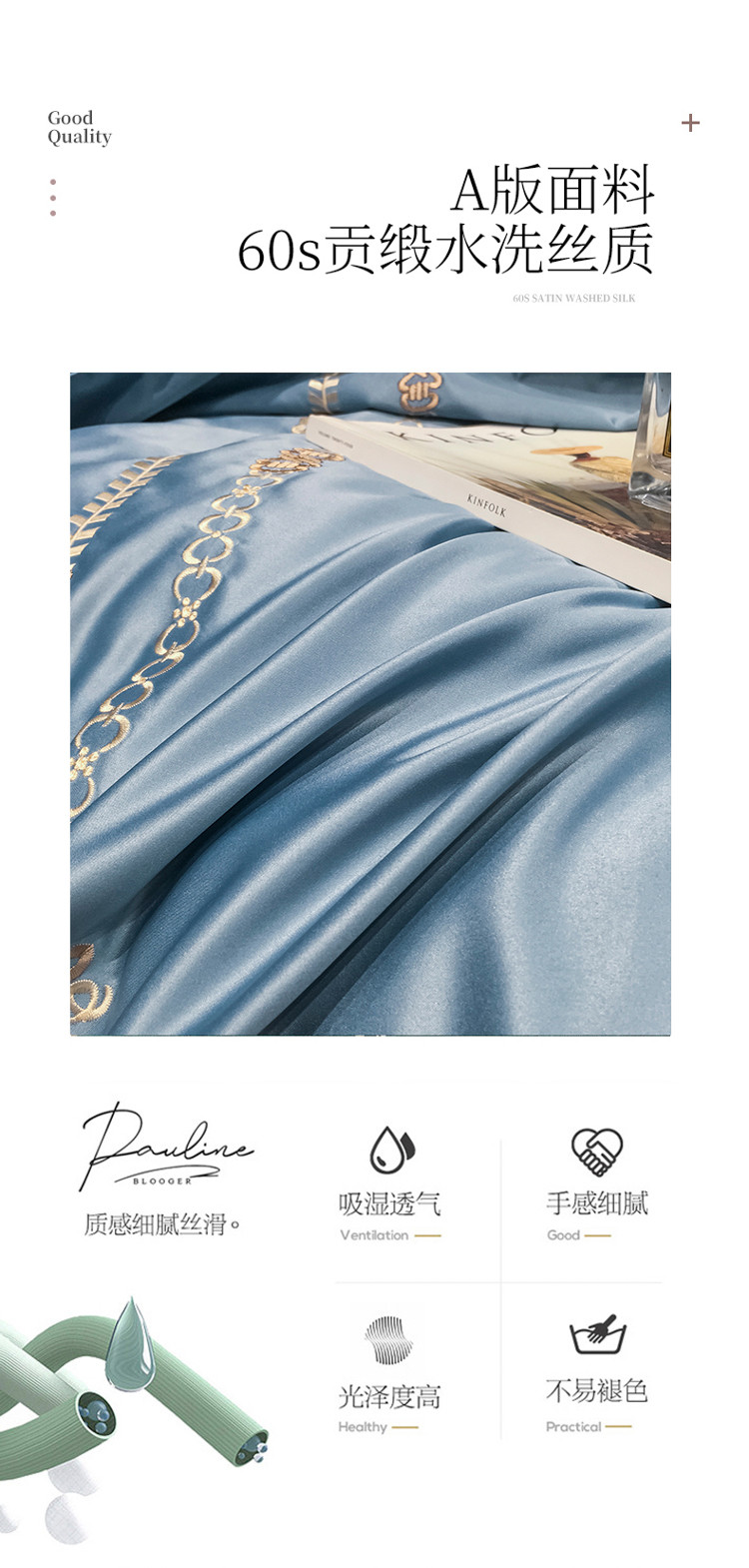 2023新款3m天丝四件套维秘花园 轻盈蓝,轻盈蓝