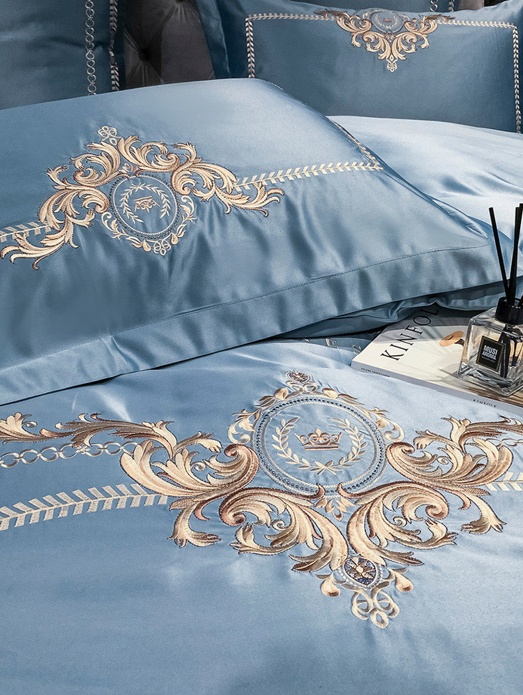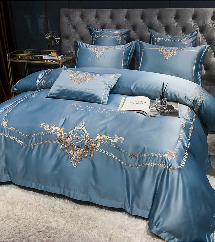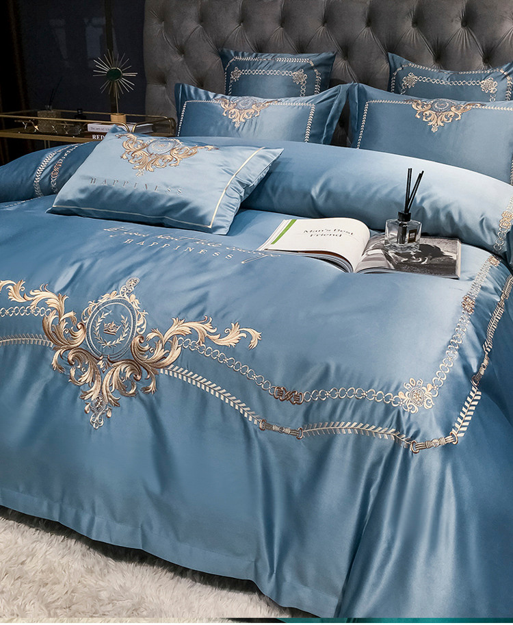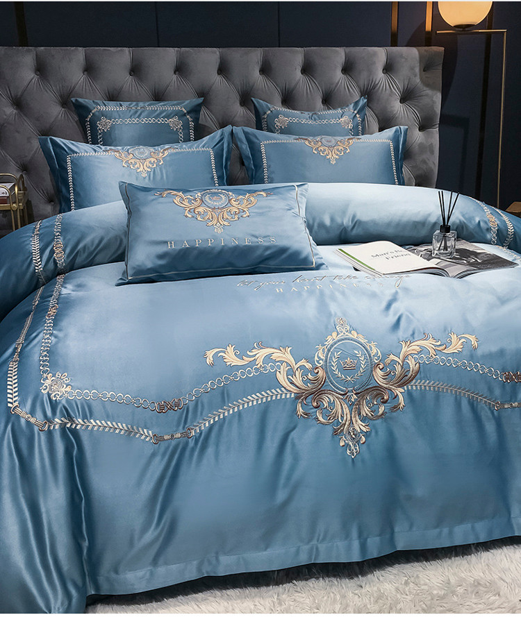 安妮 2021新款全棉贡缎四件套曼洛系列 宾利蓝