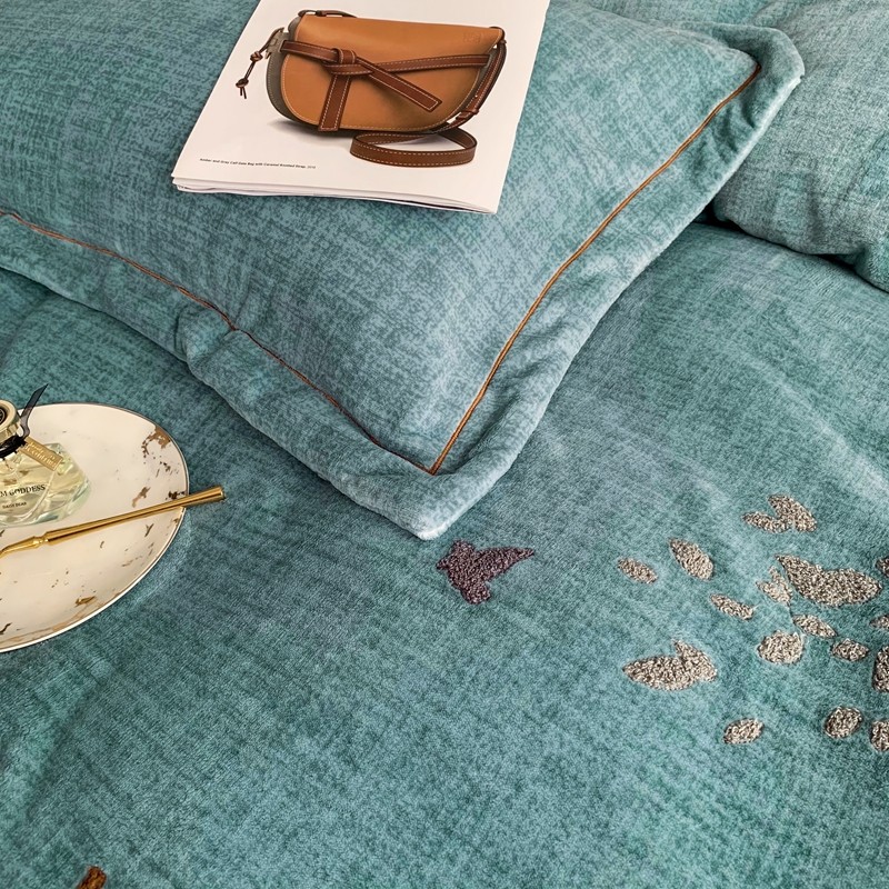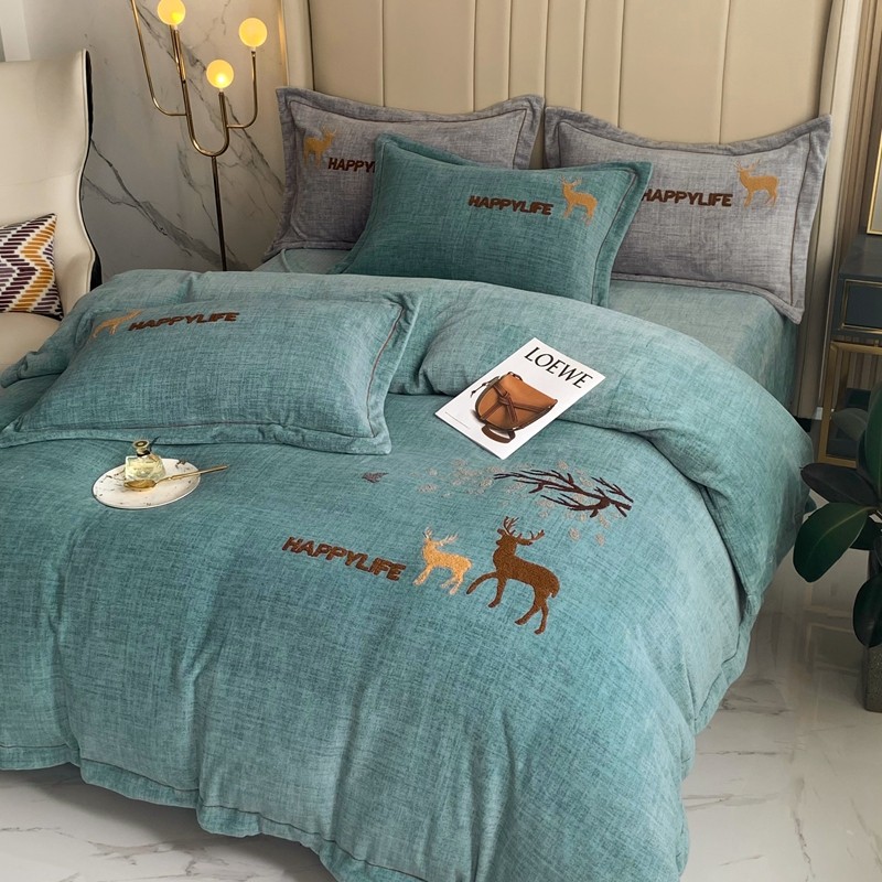 榻尚新款高克重婴肤绒四件套肌理纹理毛巾绣风格2 黛色小鹿