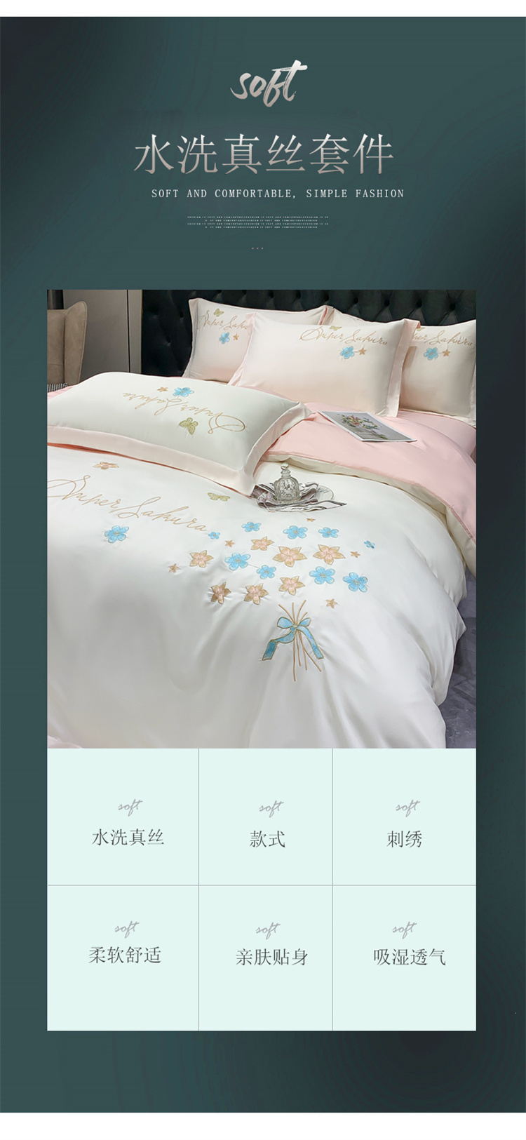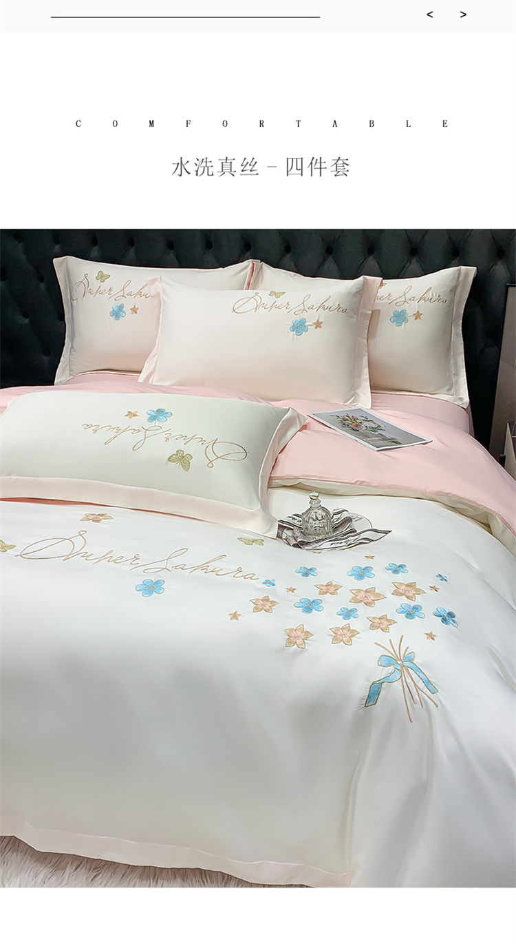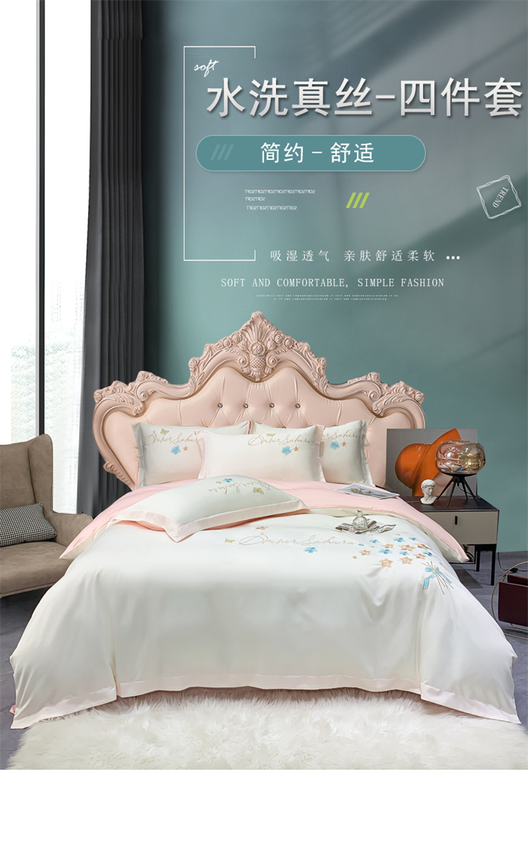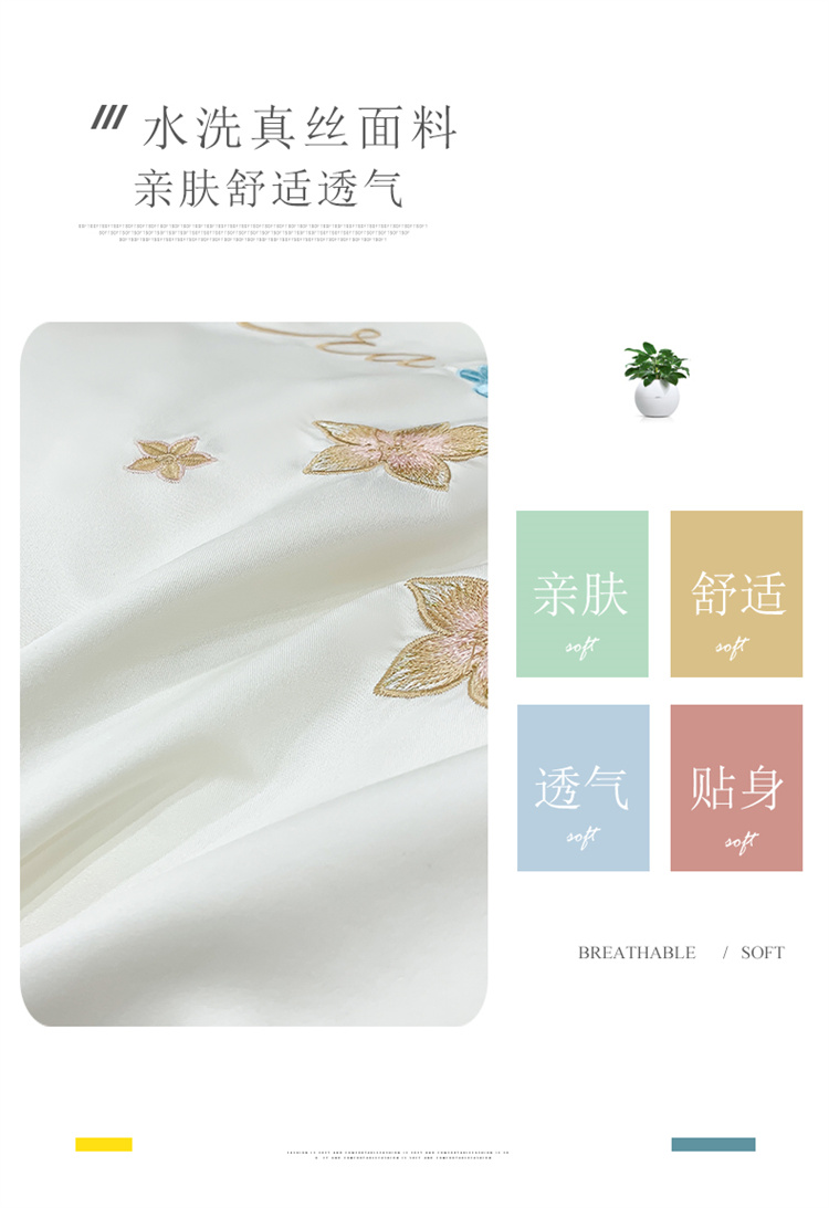 商品名称:安妮家居 2022新款水洗真丝刺绣四件套-花漾 白色