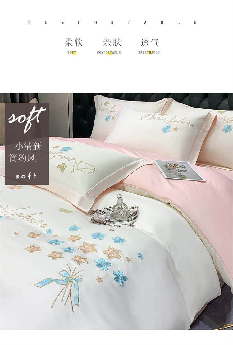 (总)安妮2025珠光蝶影3M天丝四件套,白拼粉,冰蓝,湖蓝,樱花粉