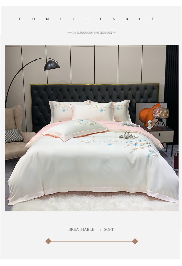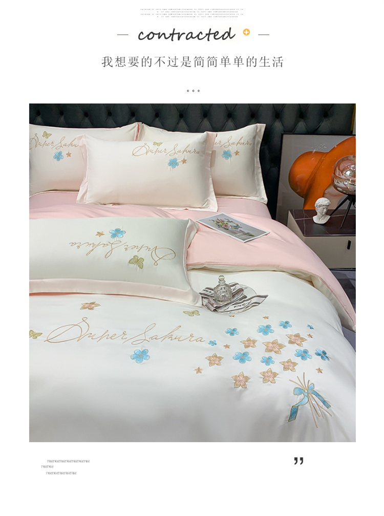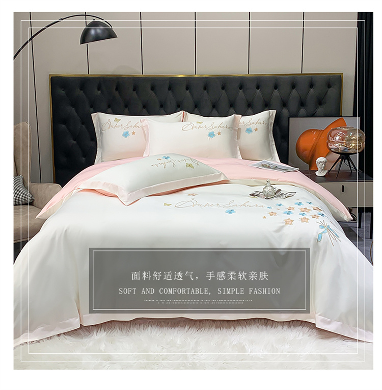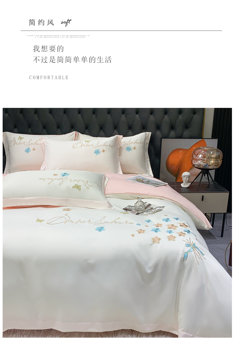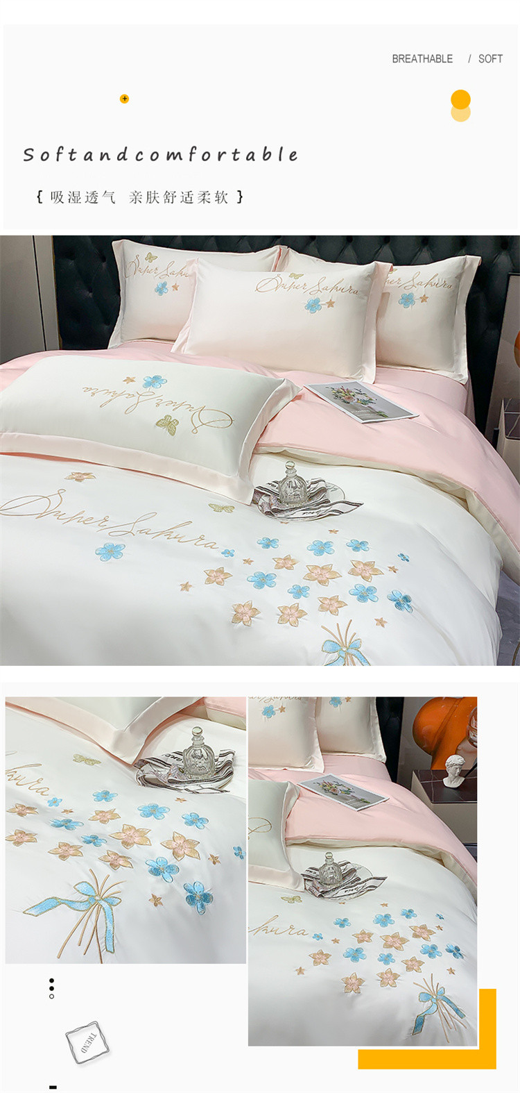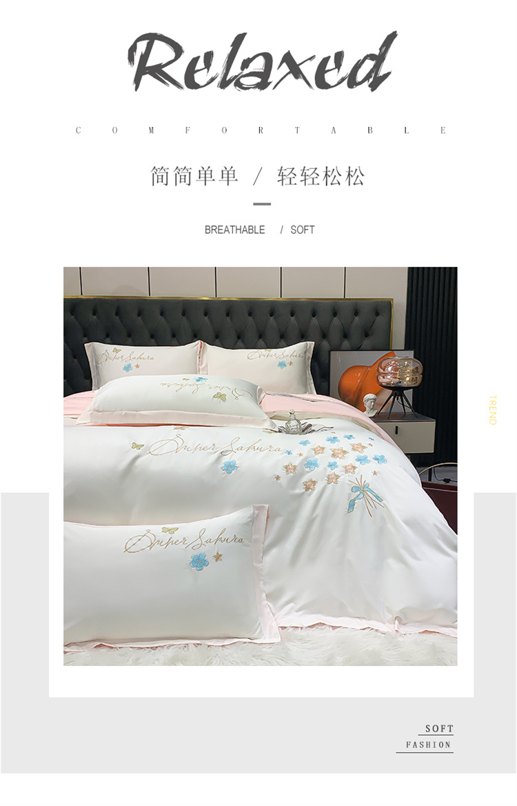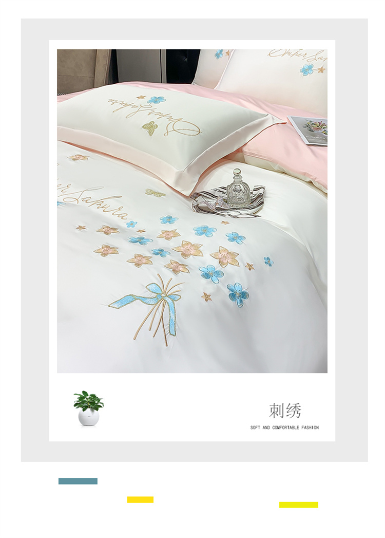(总)2023新款全棉四件套-富贵花,奶昔白,温柔粉,星辰蓝