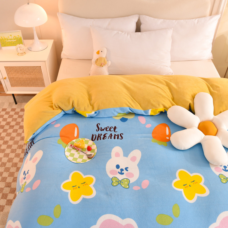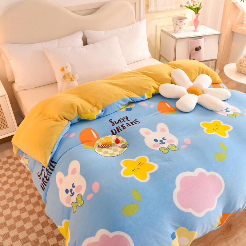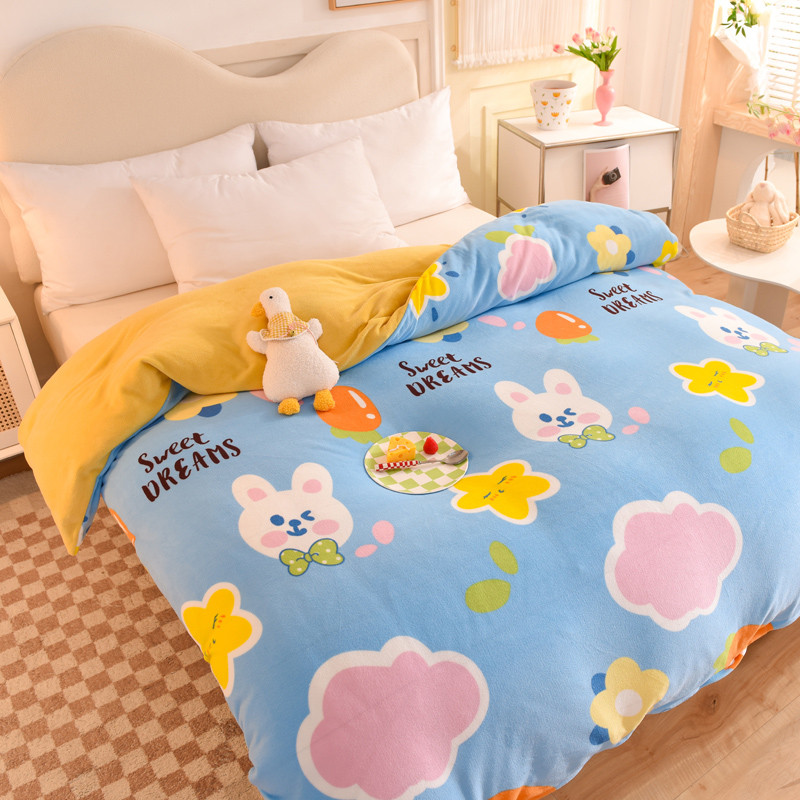 甜之梦家纺2025新款印花牛奶绒单品被套可定制任何尺寸 爱心萌兔