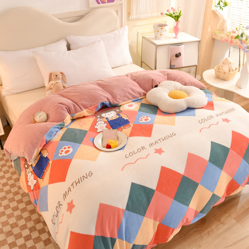 • 91家纺网 家纺一手货源 找家纺 甜之梦家纺2025新款印花牛奶绒单品被套(可定制尺寸)校园女孩