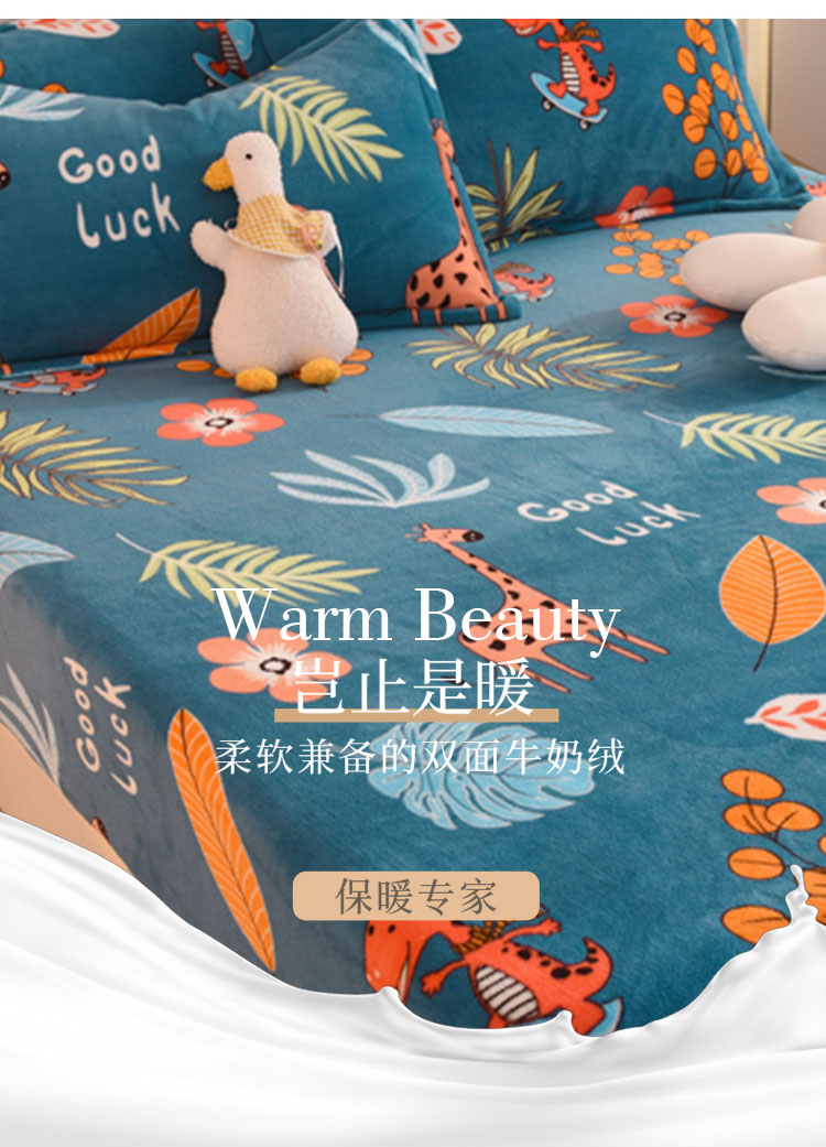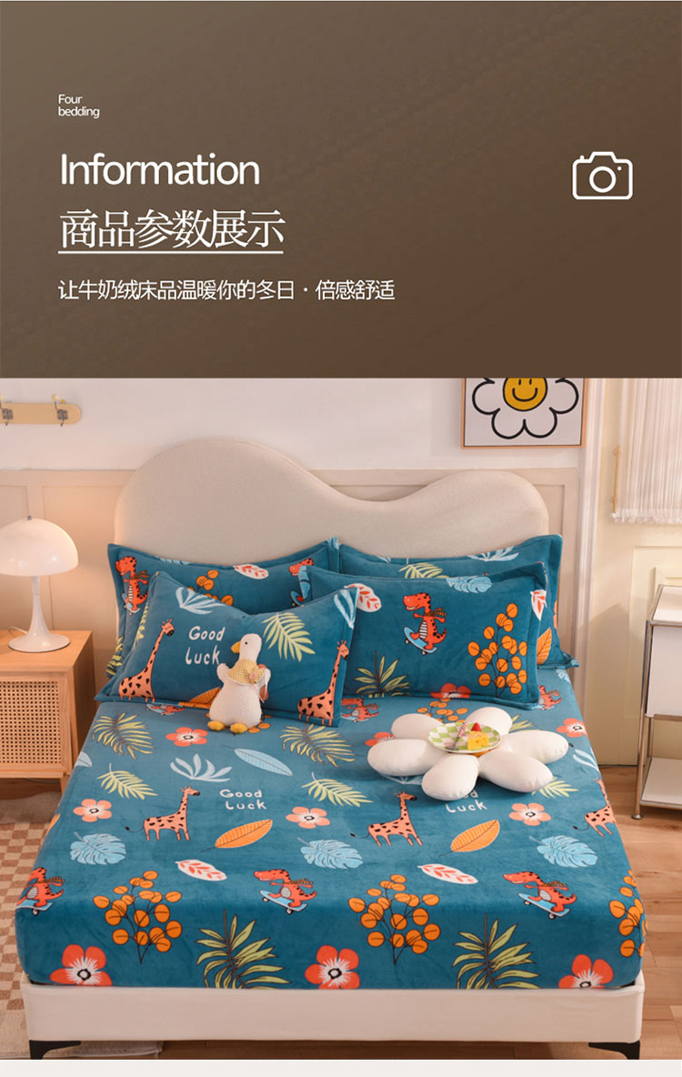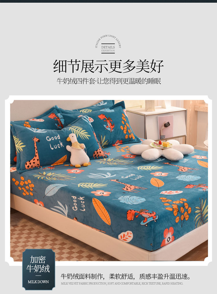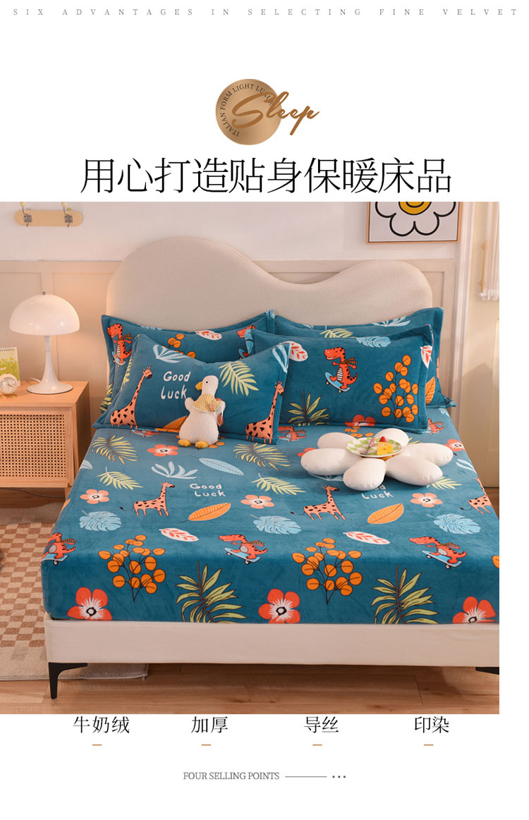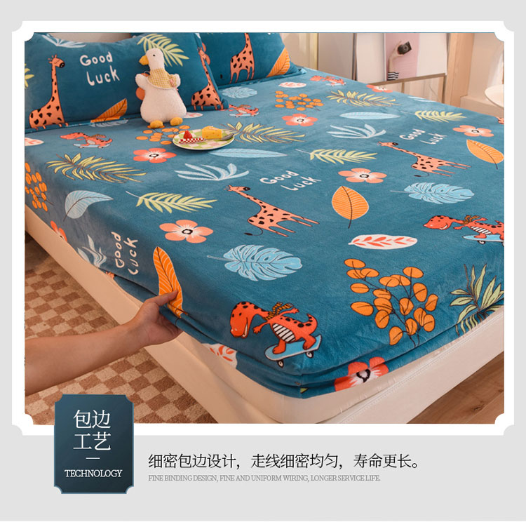 商品名称:甜之梦2025新款印花牛奶绒单品床笠可定制任何尺寸(可接异型缺角) 动物乐园