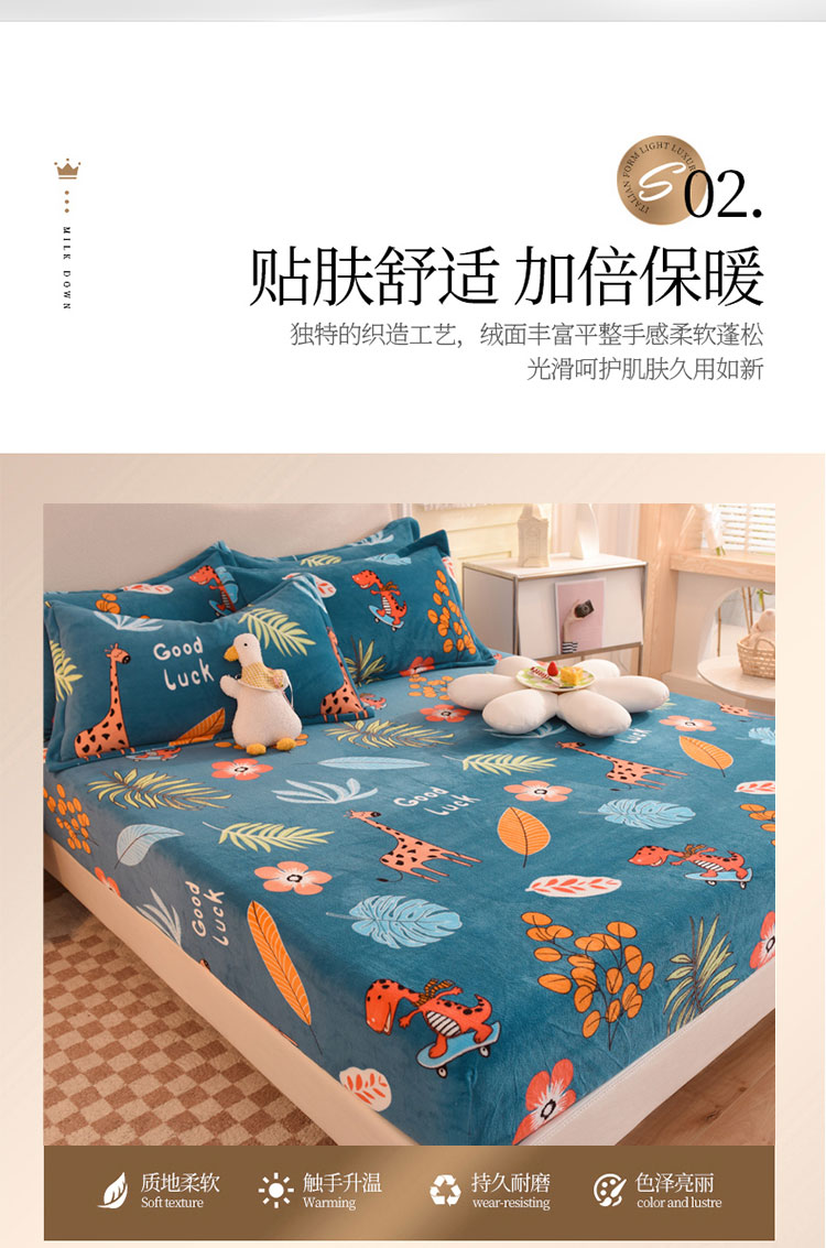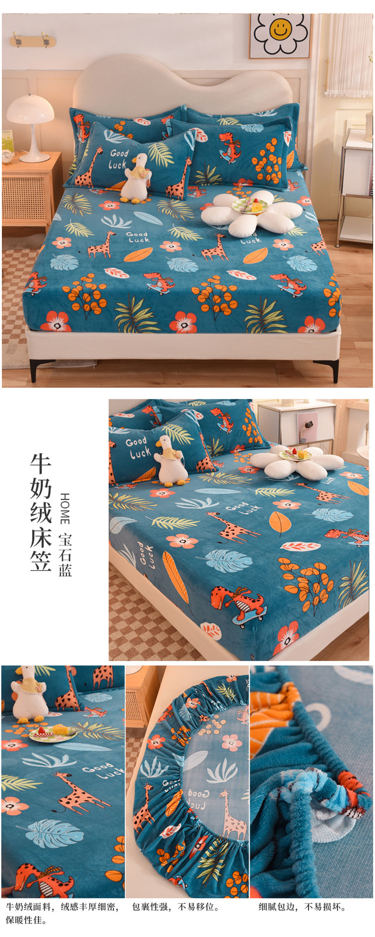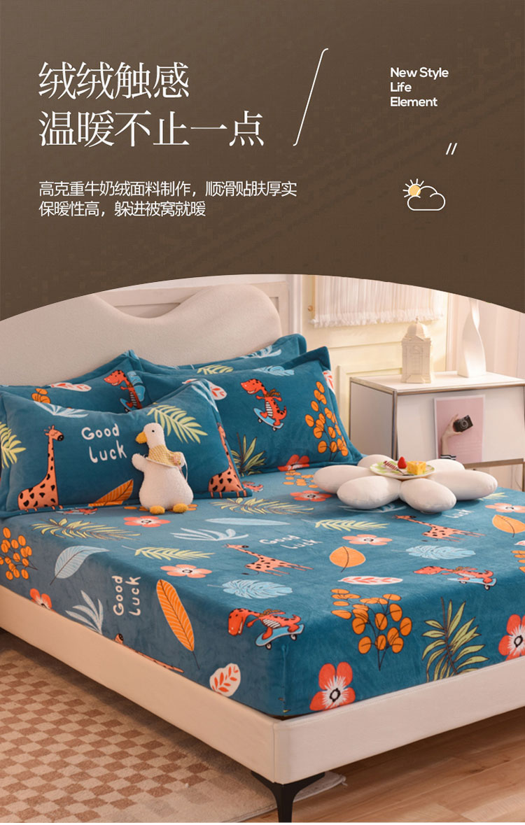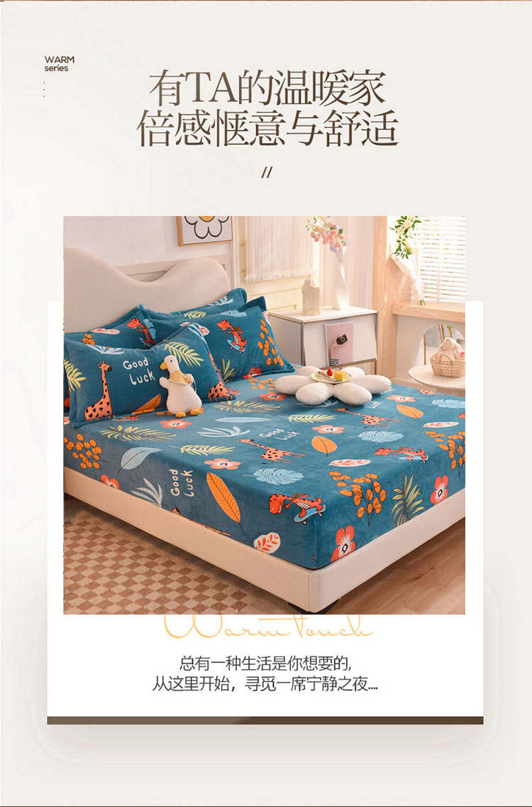 商品名称:甜之梦2025新款印花牛奶绒单品床笠可定制任何尺寸(可接异型缺角) 动物乐园