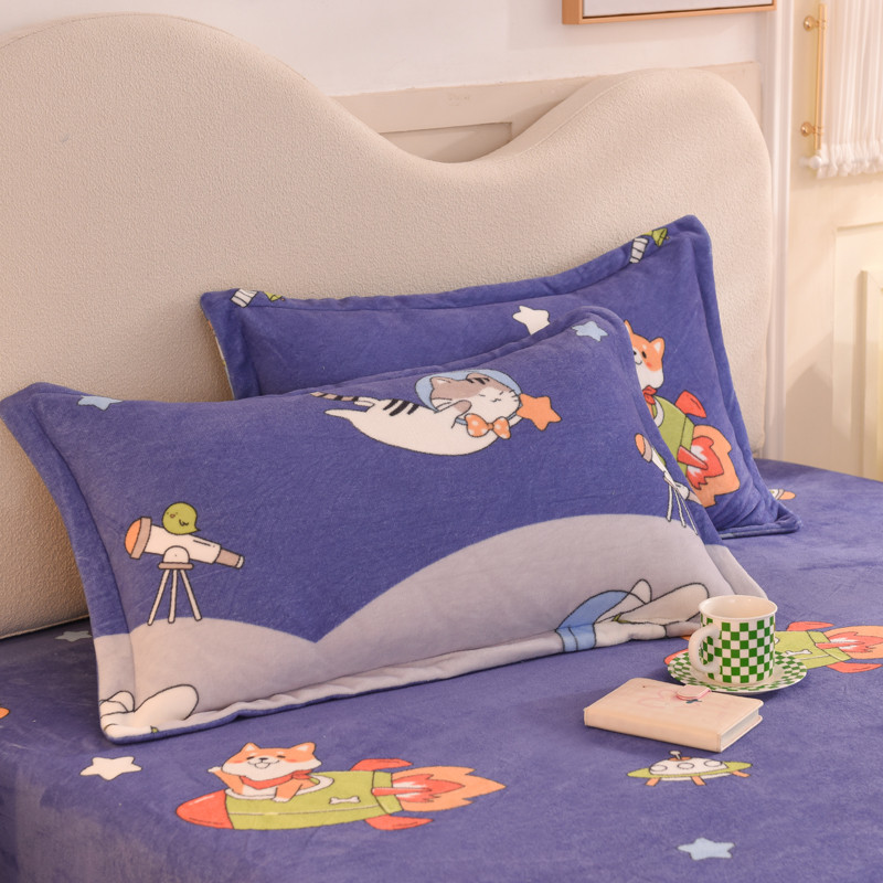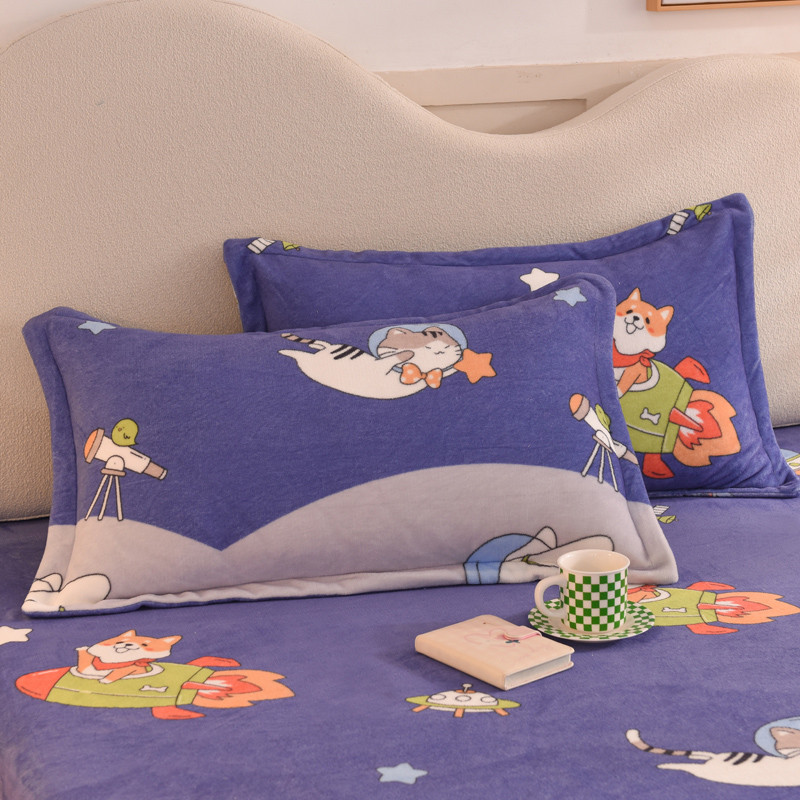 商品名称:甜之梦家纺 2025新款印花牛奶绒单品枕套 猫星球