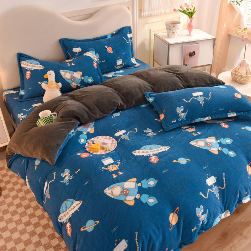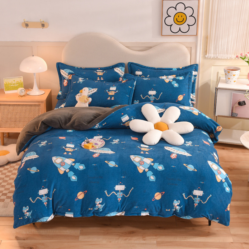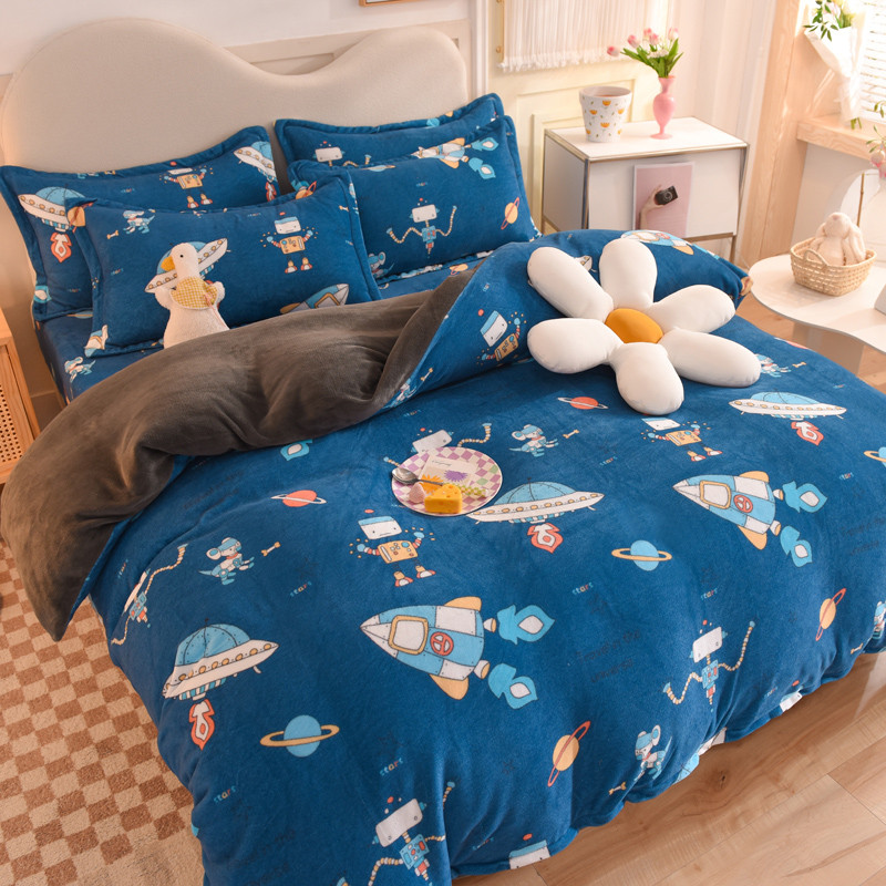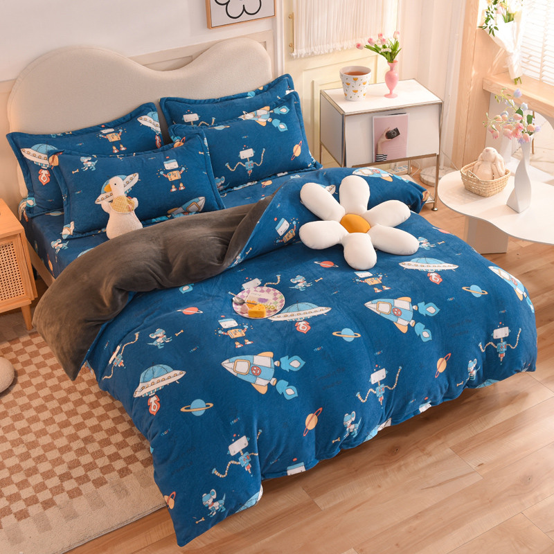 当前位置: 91家纺网 > 商品网购 > 床品套件 > 四件套 > 牛奶绒四件套 > 甜之梦家纺 2025新款印花牛奶绒单品四件套 太空机器人北卡蓝