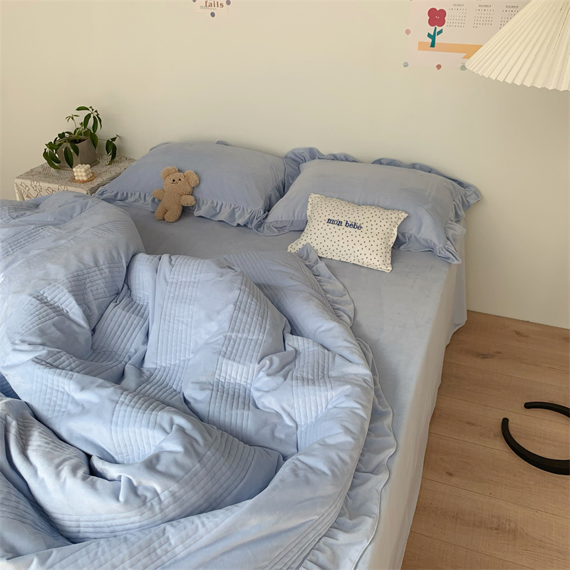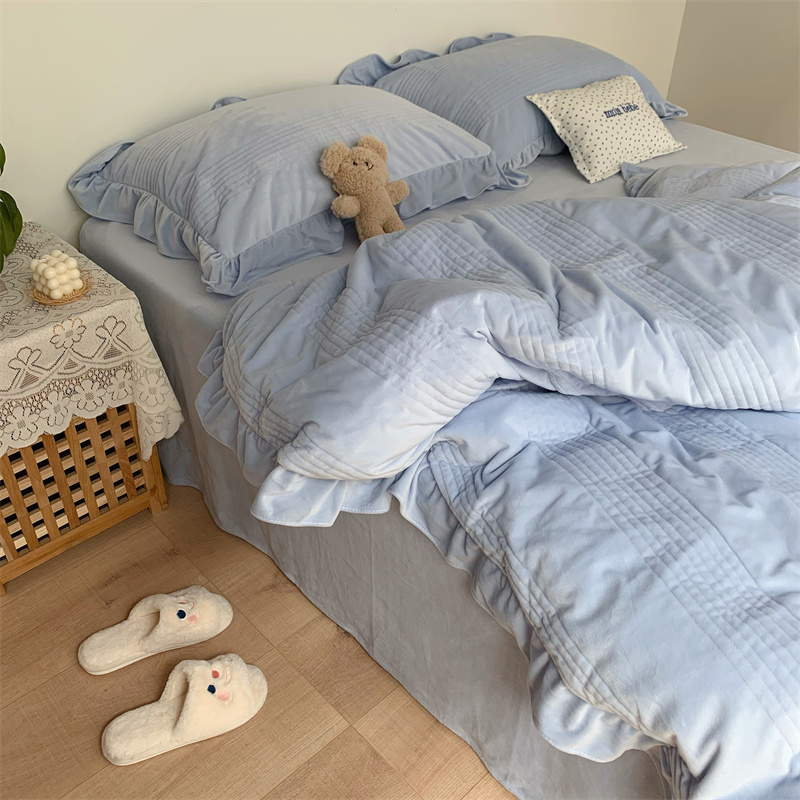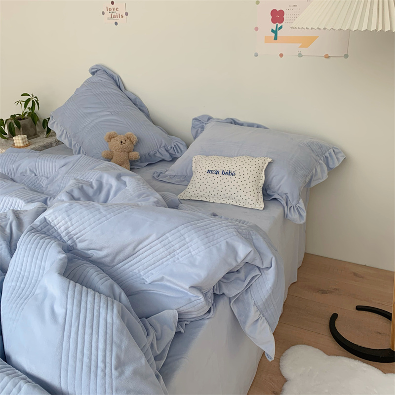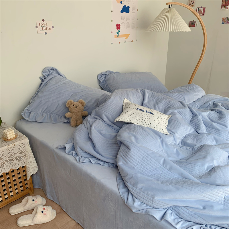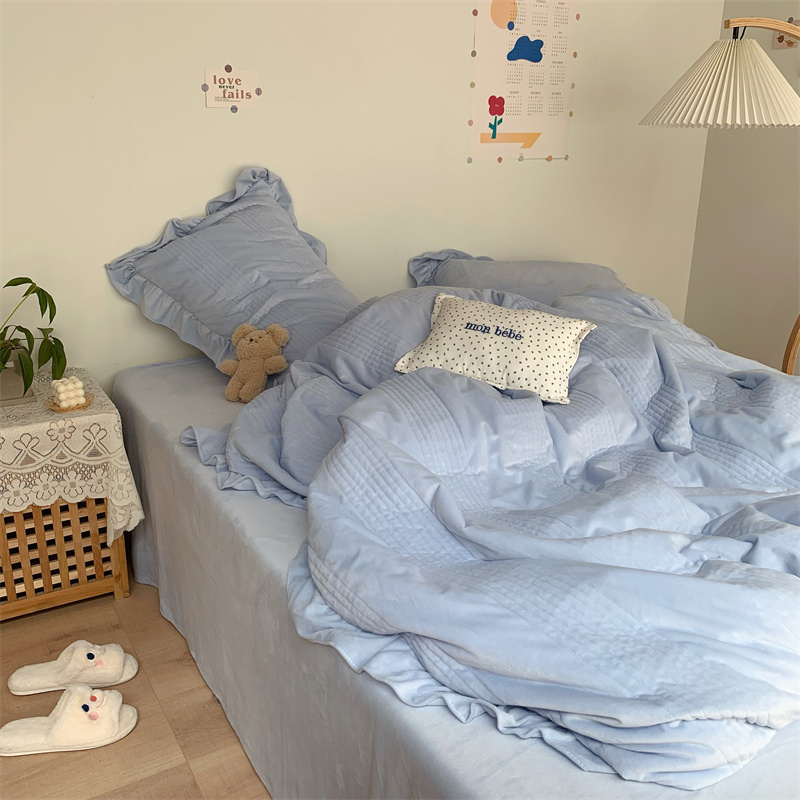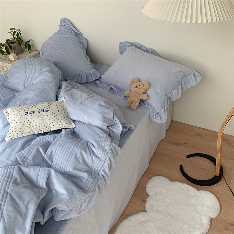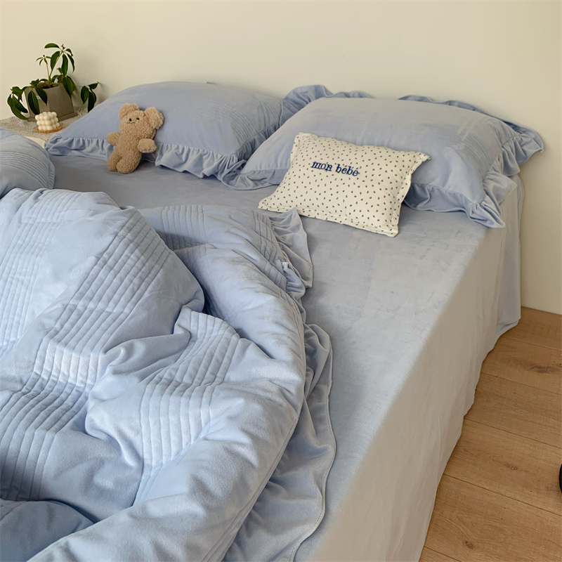 当前位置: 91家纺网 > 商品网购 > 床品套件 > 四件套 > 全棉普通四件套 > 六巷胡同 2022新款韩国博主同款婴儿绒四件套 雾霾蓝