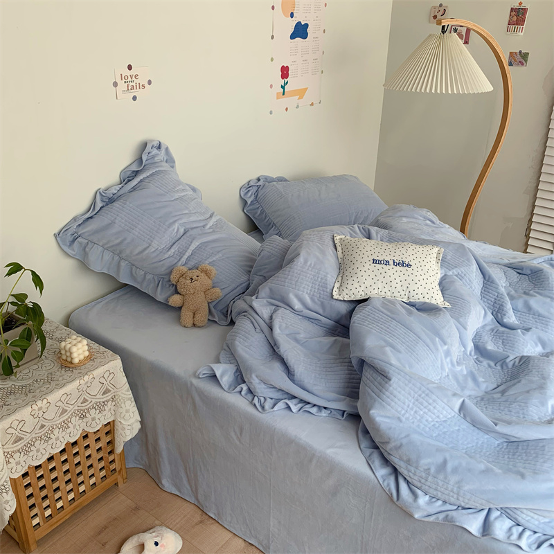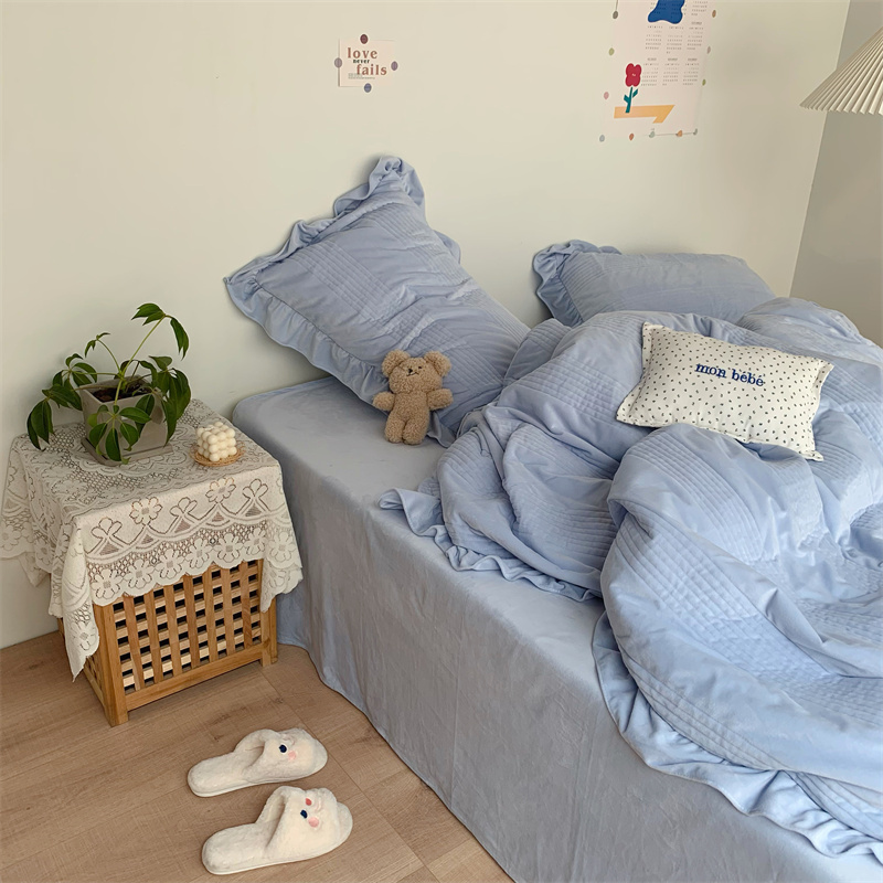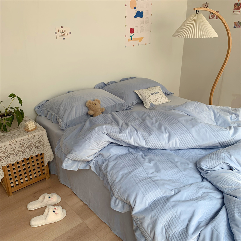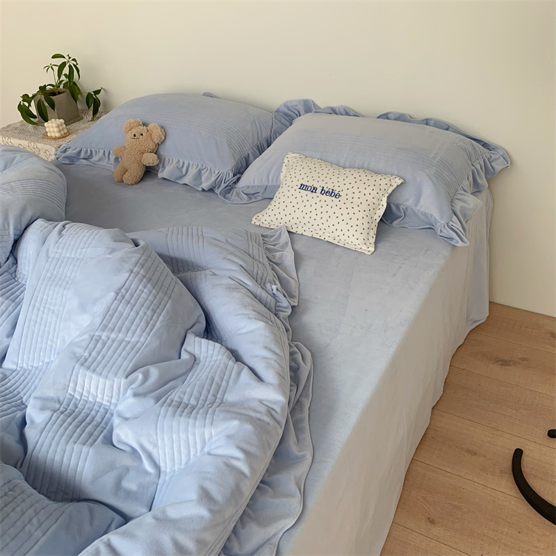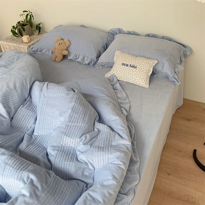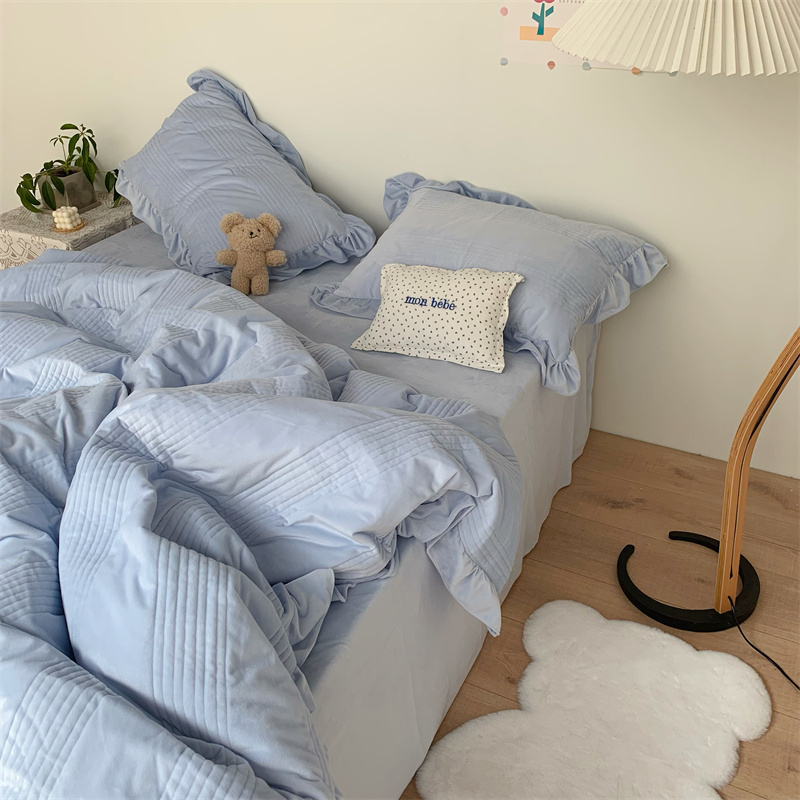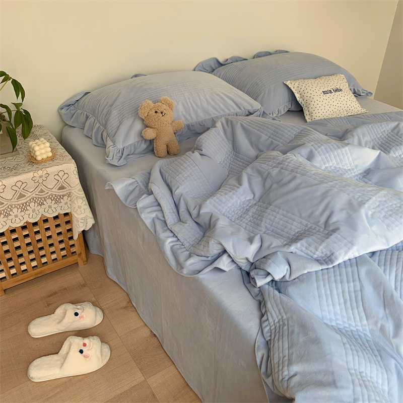 当前位置: 91家纺网 > 商品网购 > 床品套件 > 四件套 > 全棉普通四件套 > 六巷胡同 2022新款韩国博主同款婴儿绒四件套 雾霾蓝