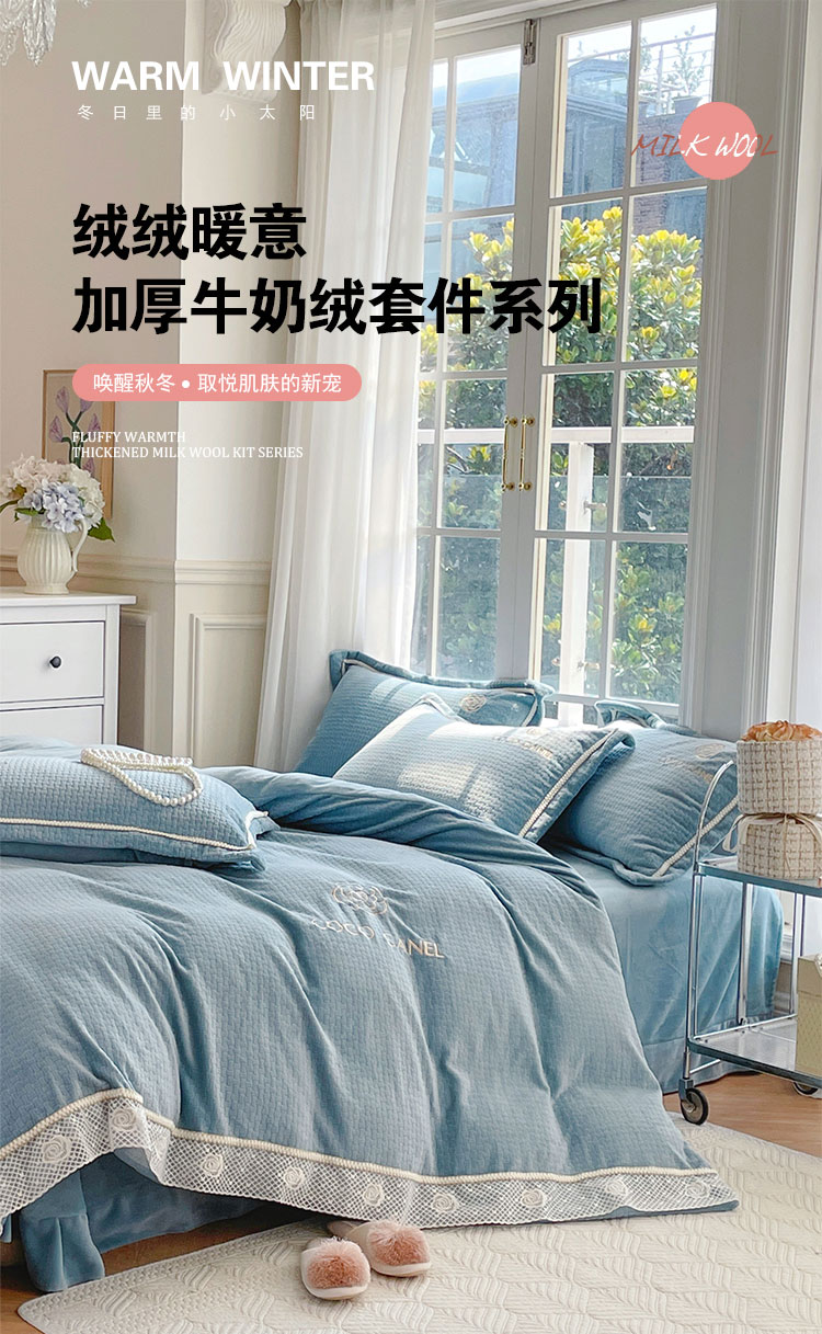 商品名称:安妮 2022新款高克重牛奶绒-COCO小姐 蓝