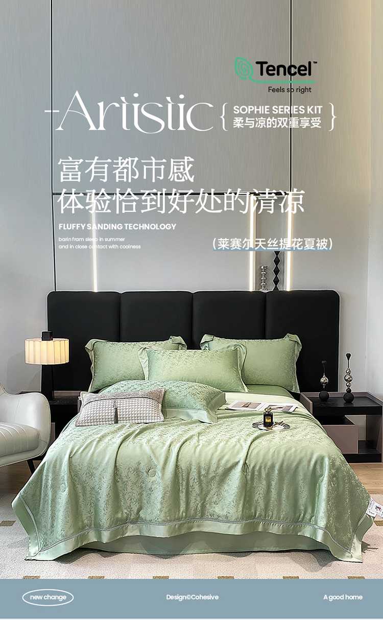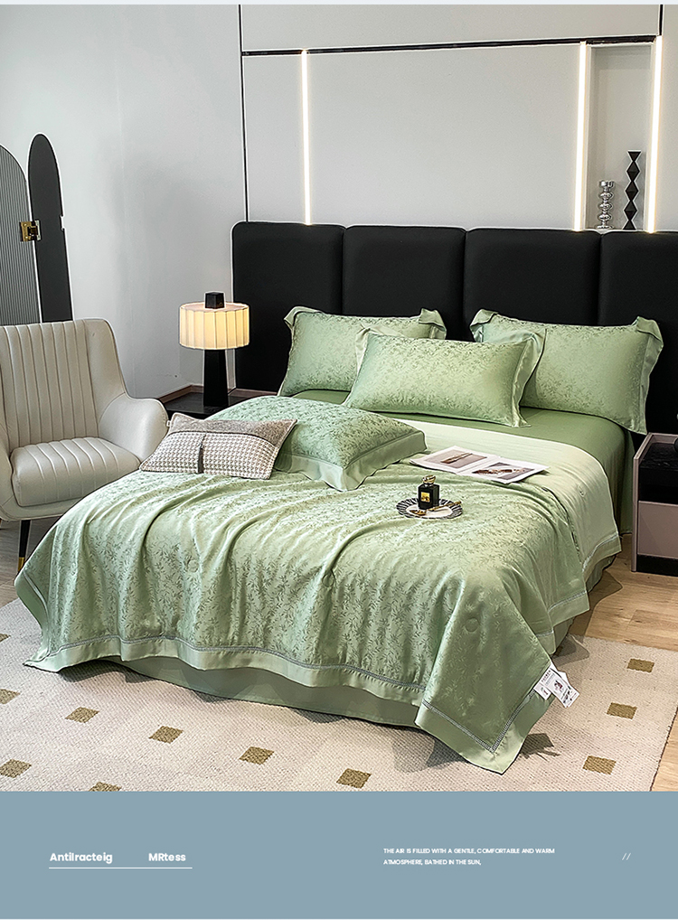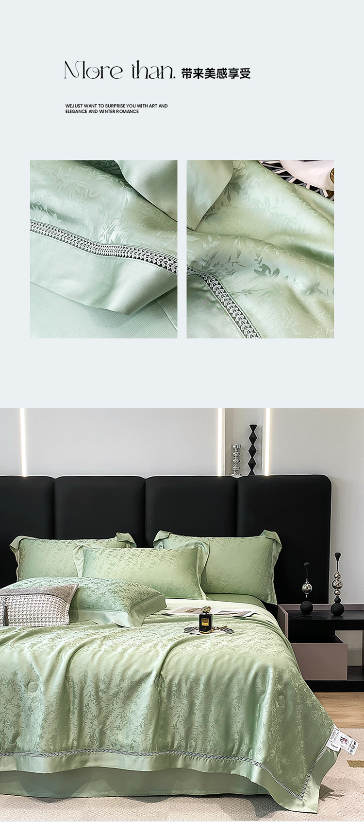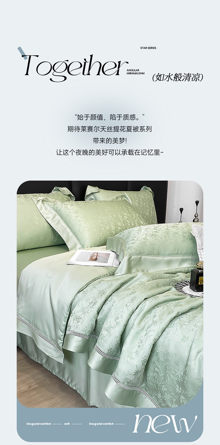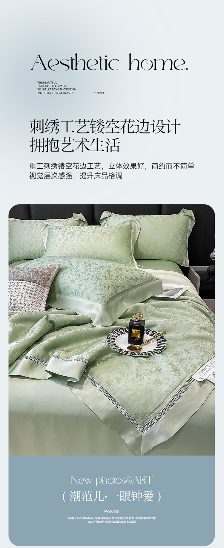娇逸家居 2025新款镂空花边60支天丝提花夏被(专版花型) 凌烟-欧碧绿