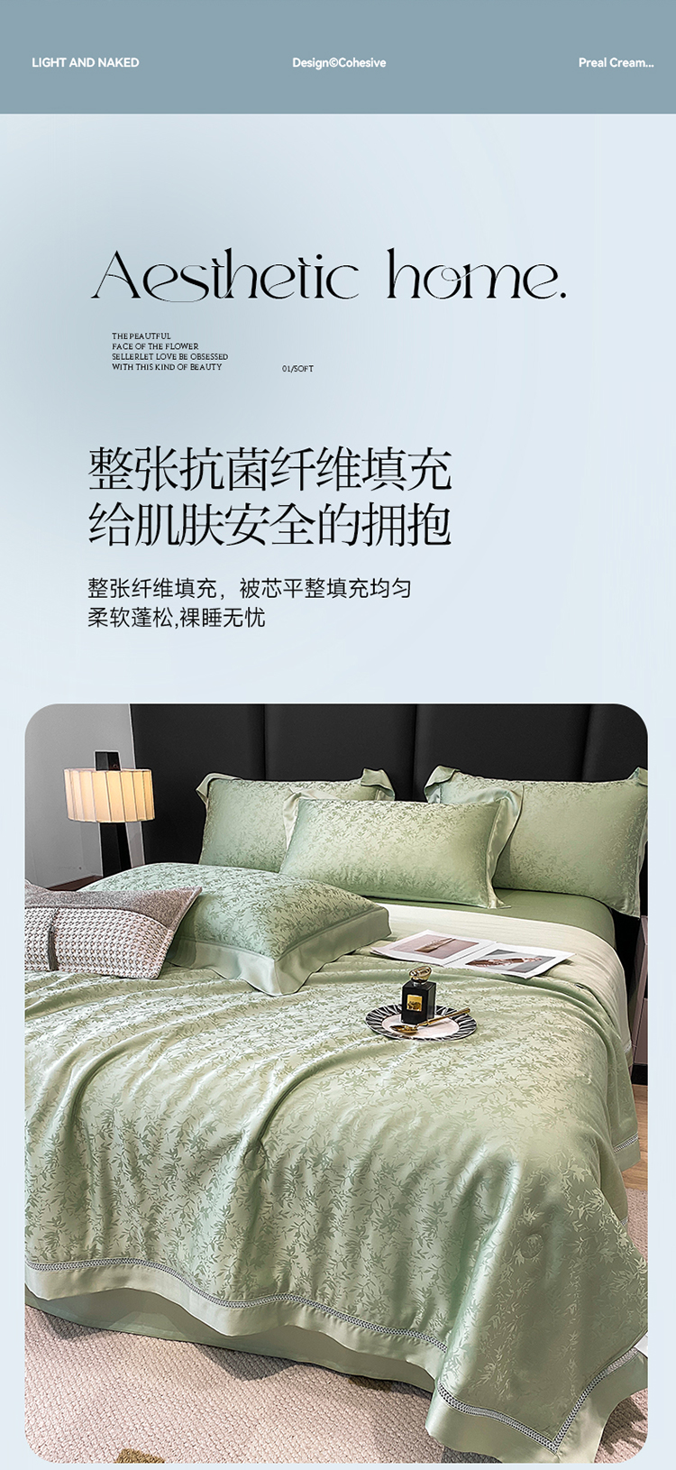 (总)娇逸家居 2025新款60支全棉纯棉提花水洗棉春秋被被子被芯 可配同系列枕套床单,枫翎绿,浮光白
