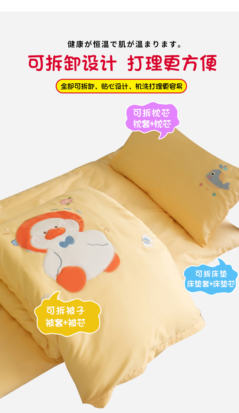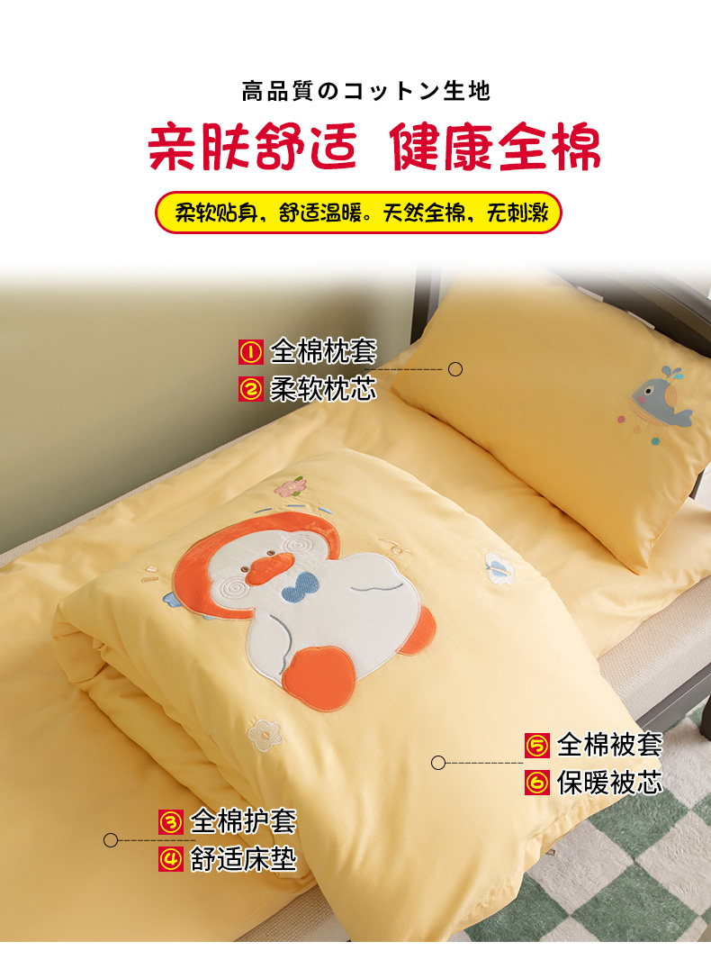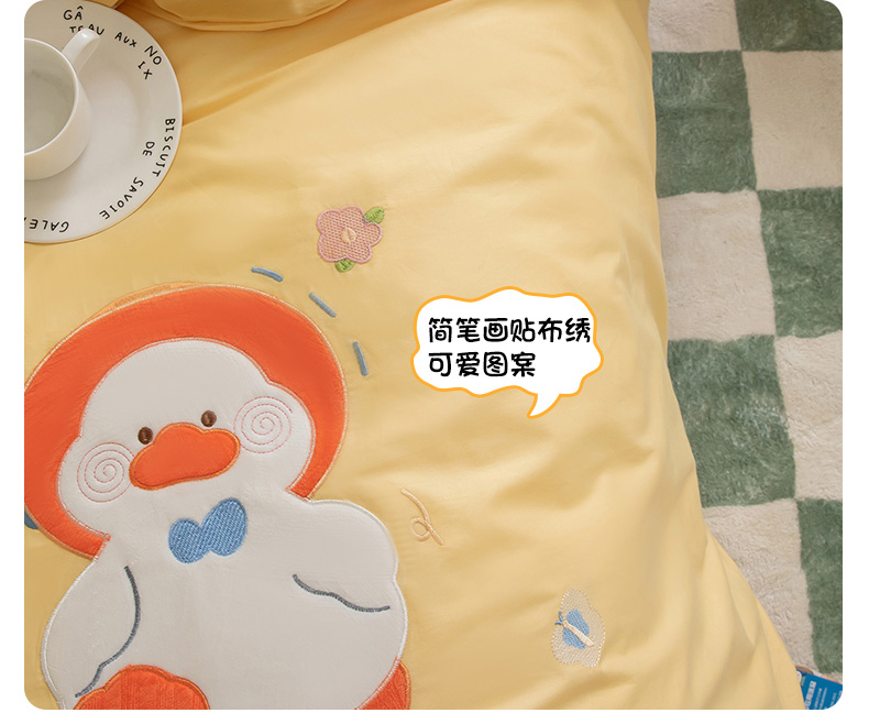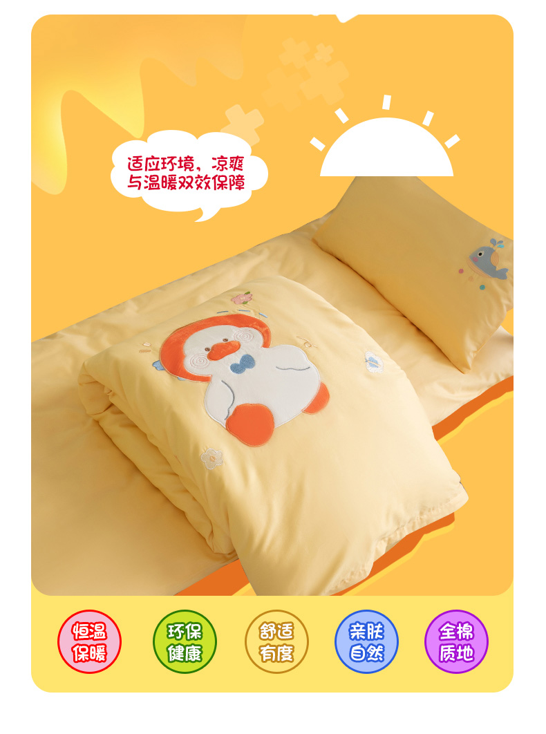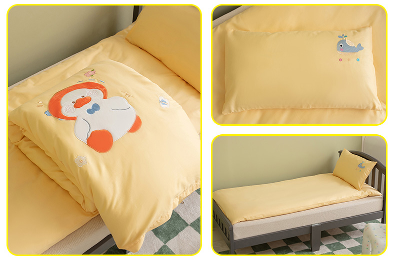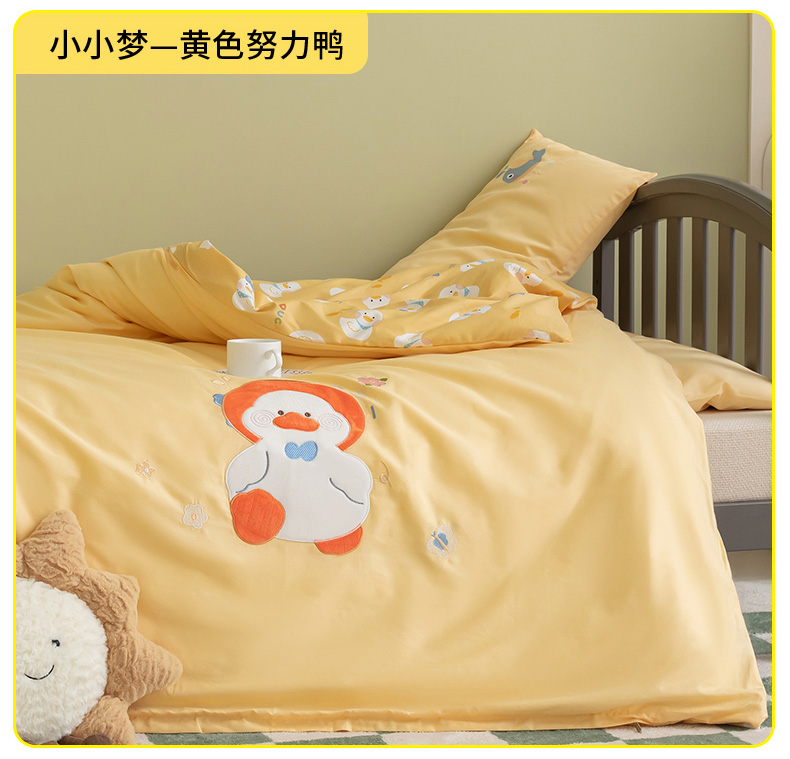当前位置: 91家纺网 > 商品网购 > 床品套件 > 三件套 > 喜多兔 2023新款40支13372纯棉小小梦绣花幼儿园被子三件套 黄色努力鸭
