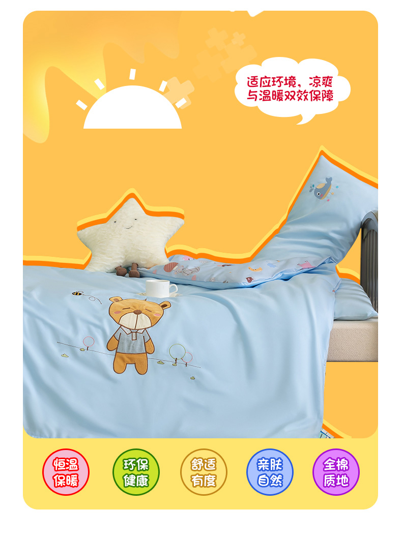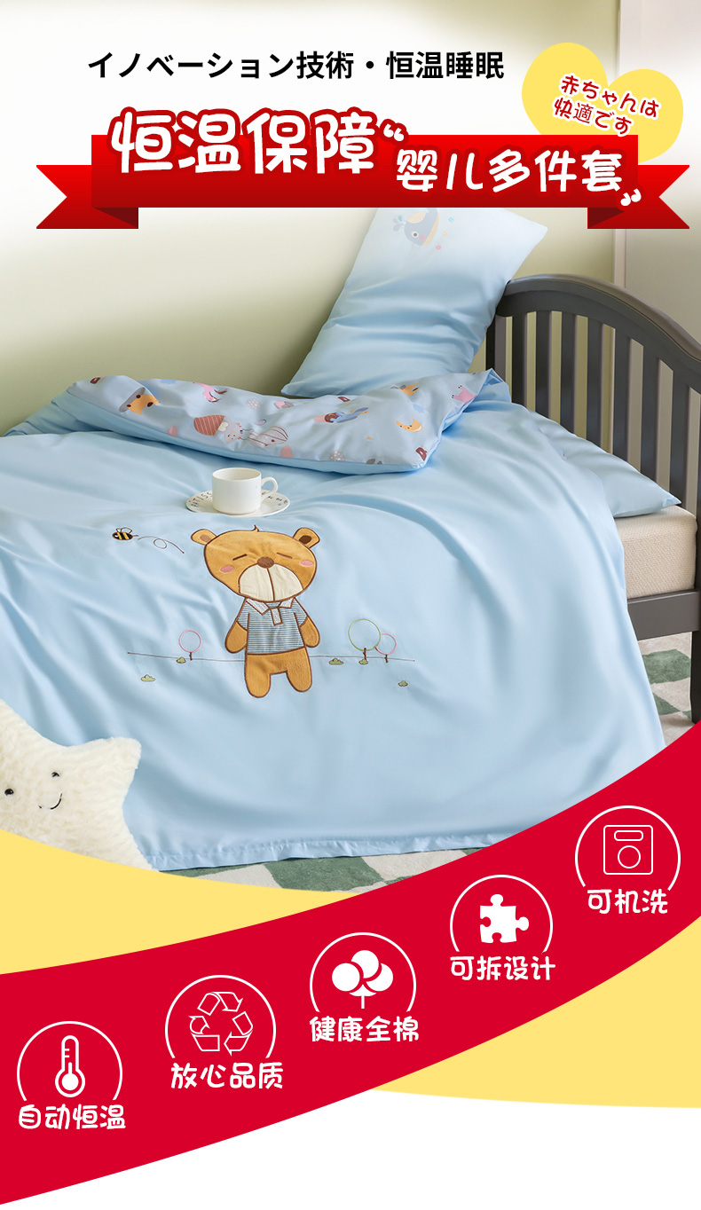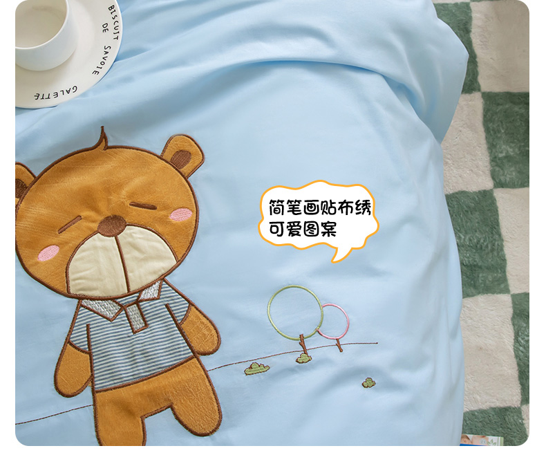 当前位置: 91家纺网 > 商品网购 > 床品套件 > 三件套 > 喜多兔 2023新款40支13372纯棉小小梦绣花幼儿园被子三件套 蓝色小熊仔