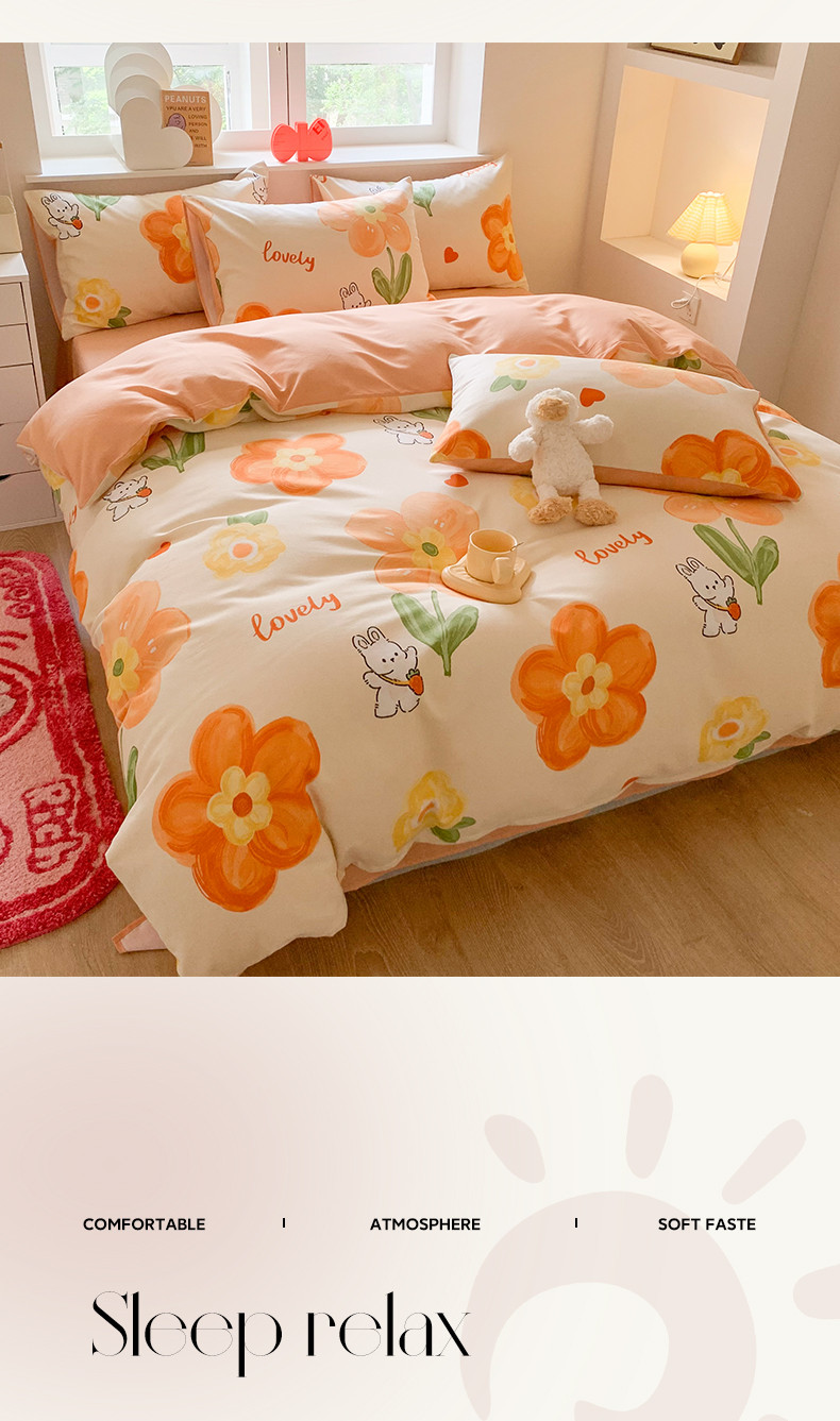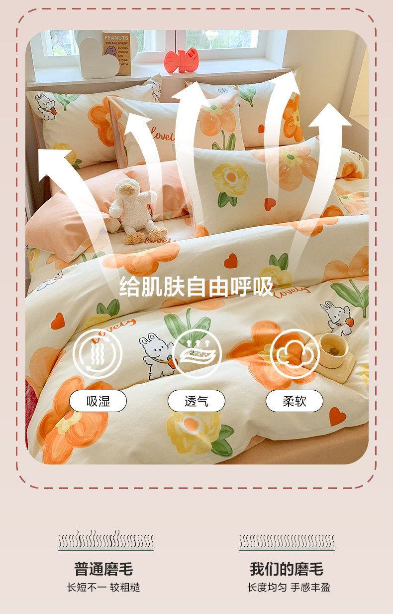 商品名称:澳萝拉 2023新款磨毛四件套-卡通系列 花园兔