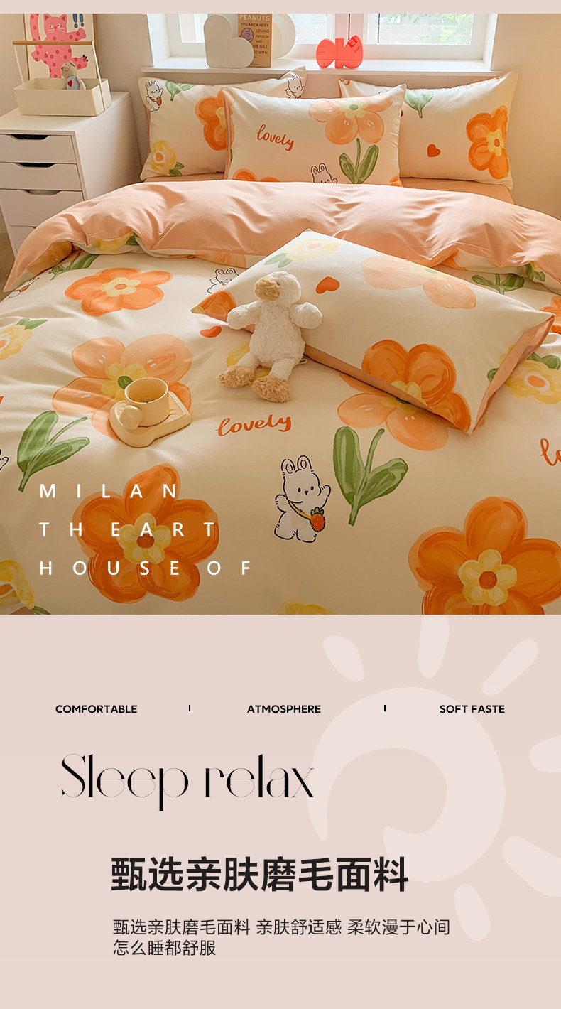 澳萝拉 2023新款磨毛四件套-卡通系列 花园兔