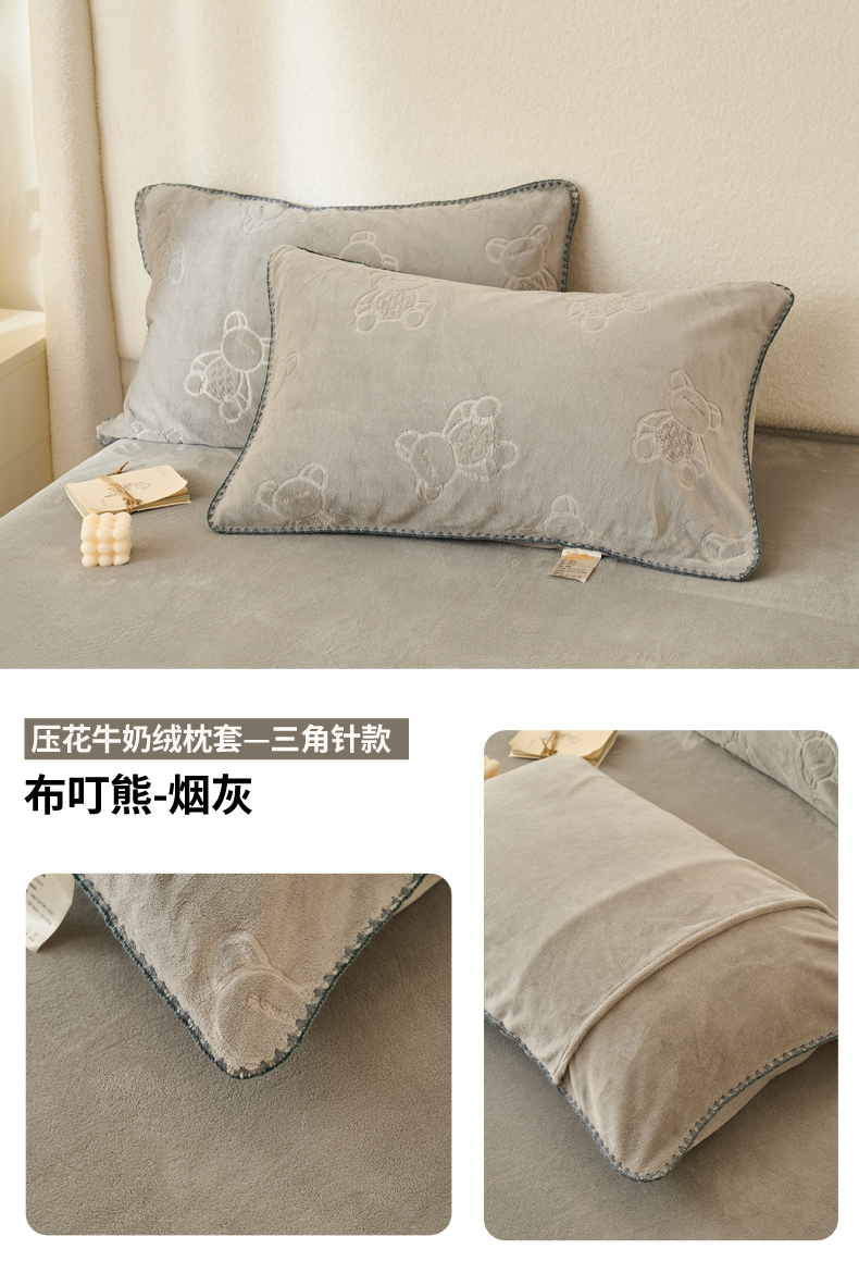 21度C 2023新款布叮熊云朵压花绒包边三角针枕套 布叮熊三角针烟灰