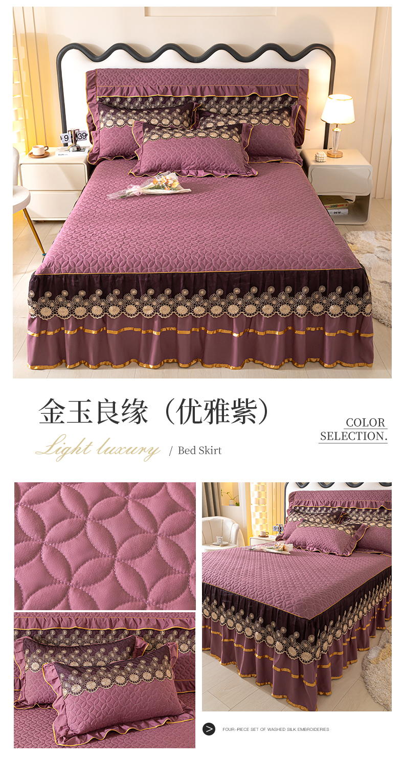 当前位置: 91家纺网 > 商品网购 > 床品套件 > 三件套 > 靓生活 2023新款夹棉绗缝床裙三件套-金玉良缘 优雅紫