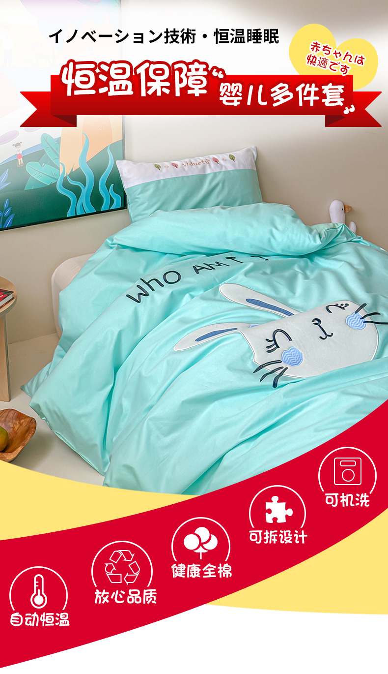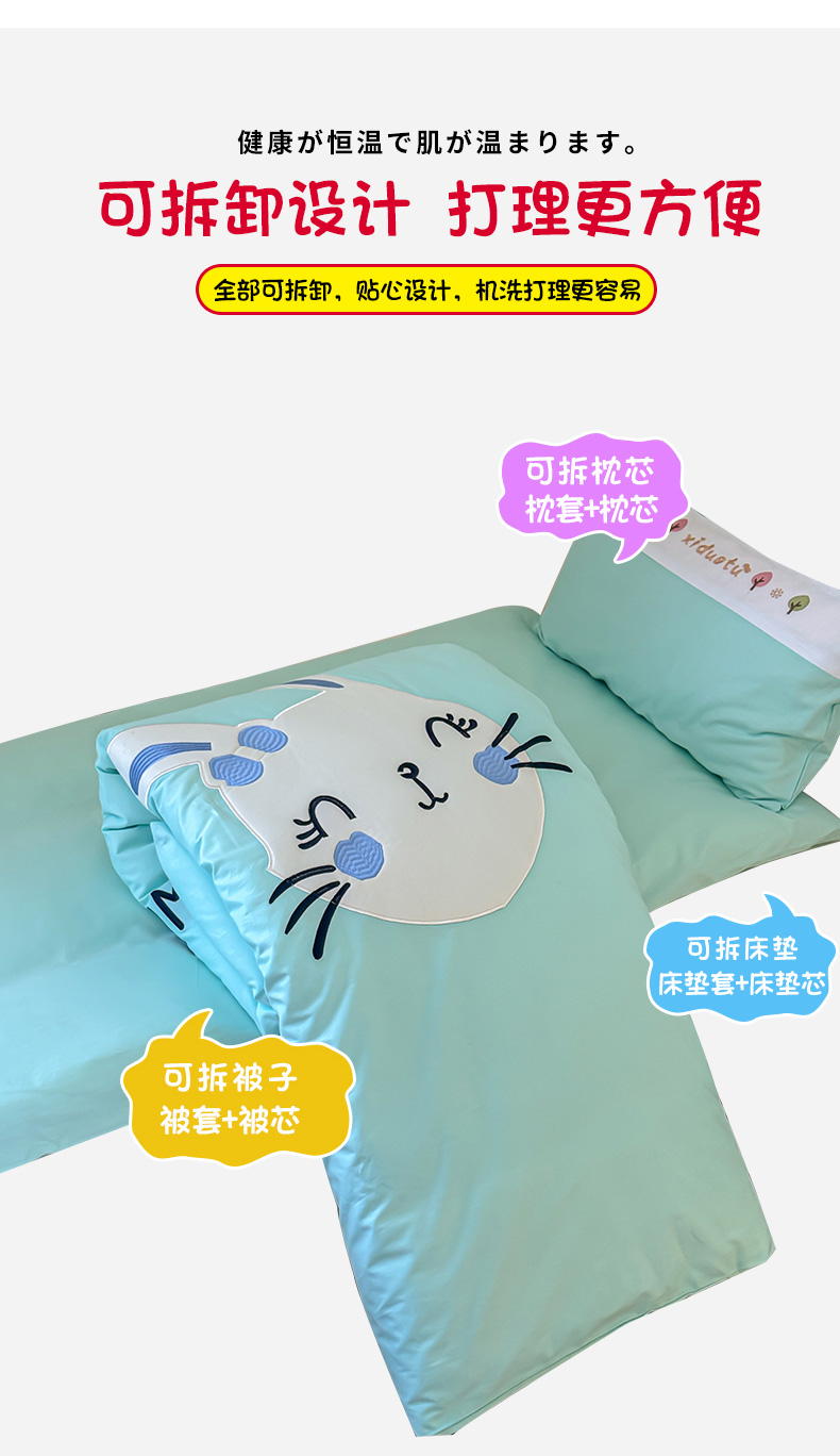 当前位置: 91家纺网 > 商品网购 > 床品套件 > 多件套 > 多件套 > 2024新款全棉小甜心纯棉绣花幼儿园被子三件套 湖蓝色小兔子哈尼